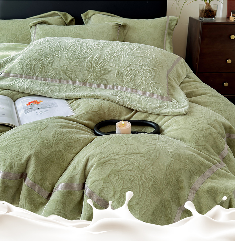 (总)家居1号家纺 2025新款全消光牛奶绒刺绣圣玛丽四件套,圣玛丽-粉豆沙,圣玛丽-果绿,圣玛丽-晴蓝,圣玛丽-绅士灰,圣玛丽-香槟金
