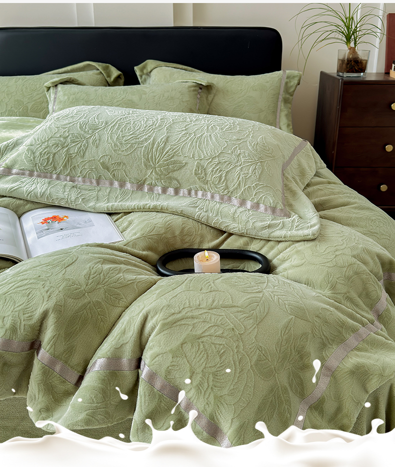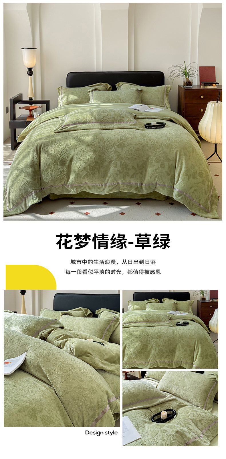 家居1号家纺 2024新款230克牛奶绒四件套-花梦情缘 花梦情缘-草绿