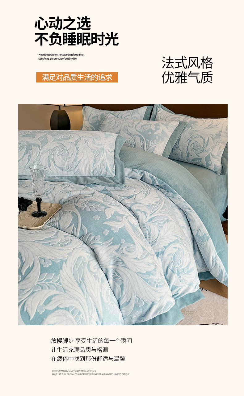 (总)慕晨 2025新款立体提花绒简约风格高克重雕花加厚牛奶绒四件套,波西米亚-米白,花季恋歌-粉,花约-驼,玫瑰之约-粉,玫瑰之约-米白,轻奢旗格-米白,轻奢旗格-浅灰,水杉叶-绿,水杉叶-米白