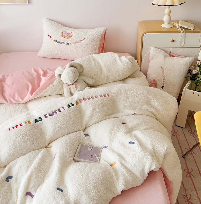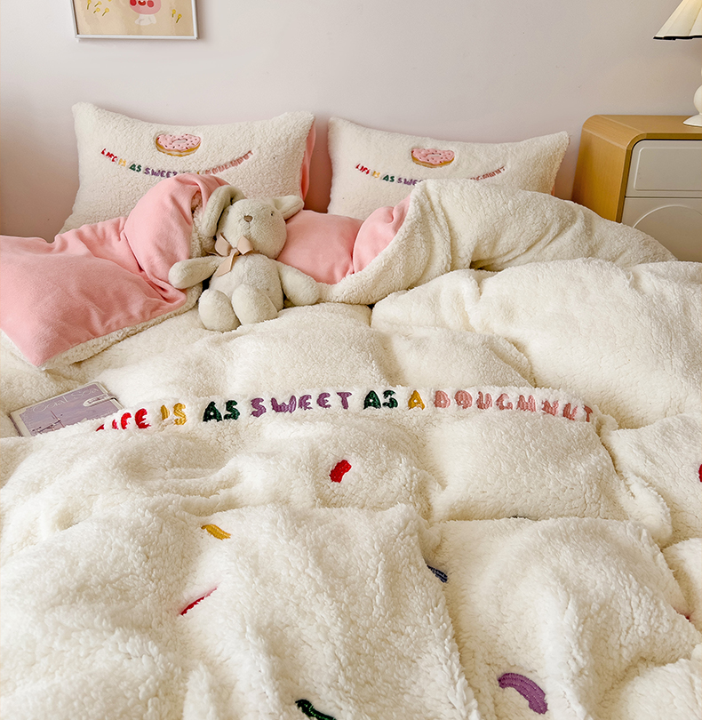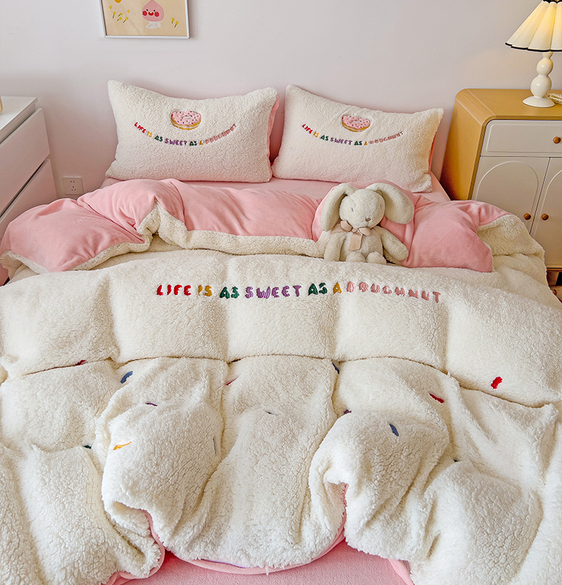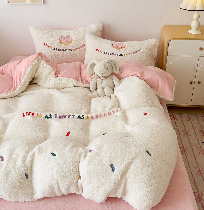 (总)盼季家纺 2025新款小清新羊羔绒四件套加厚牛奶绒保暖床单被套宿舍三件套,羊羔绒甜甜圈-奶粉,羊羔绒甜甜圈-奶黄,羊羔绒甜甜圈-奶蓝