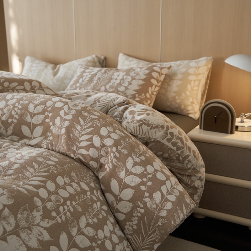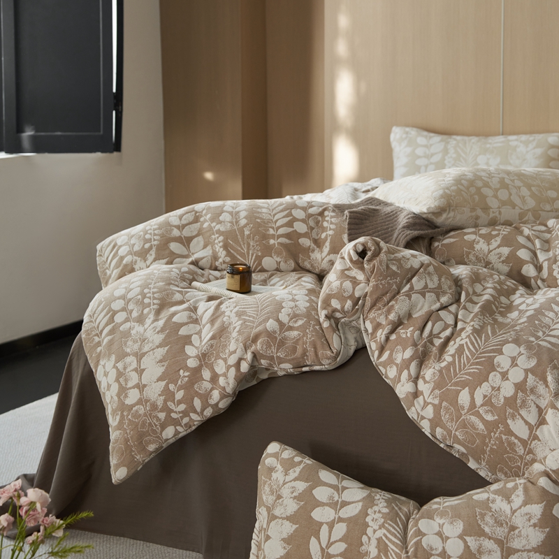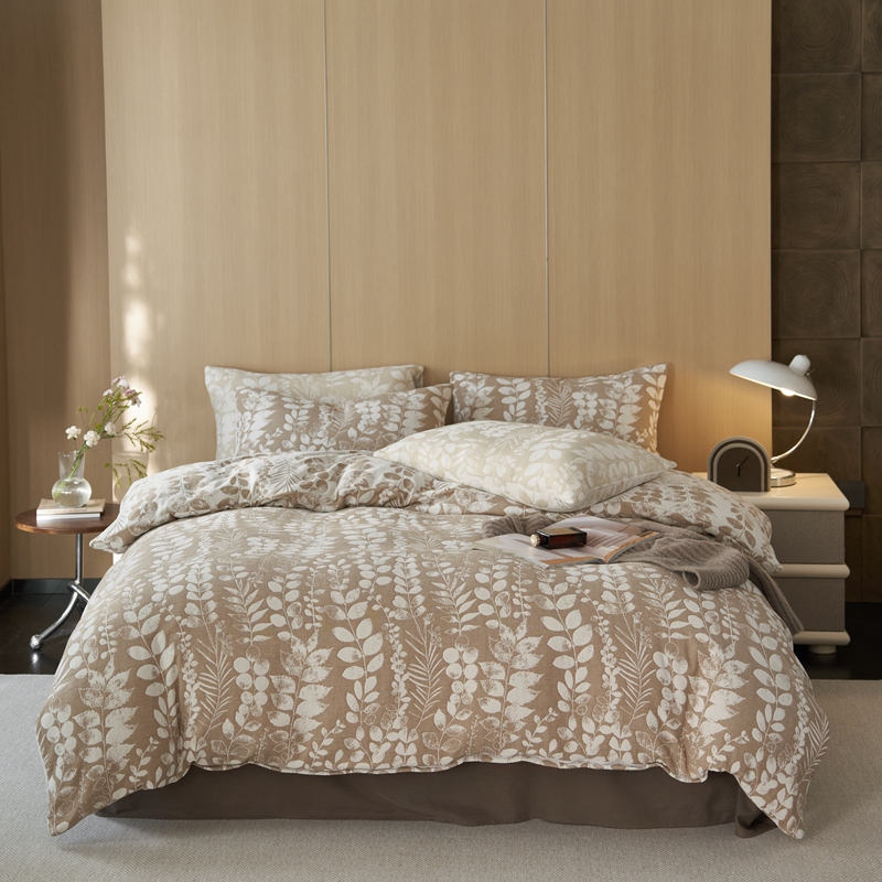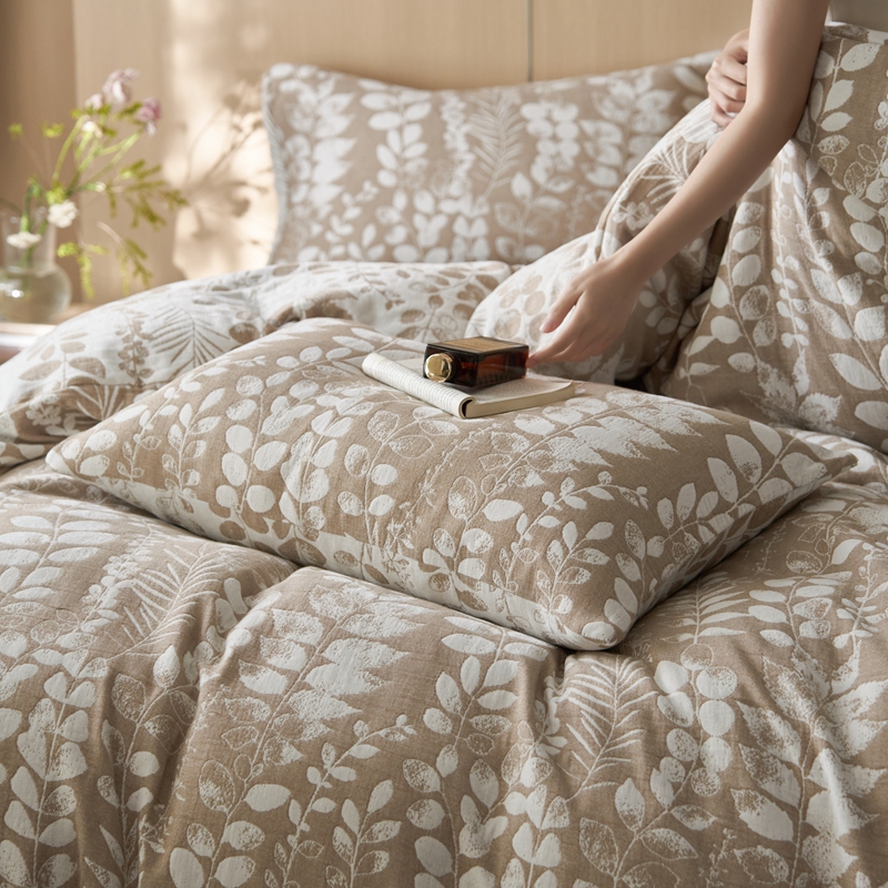 (总)简家居 2025新款20%亚麻80%棉棉麻提花四件套-常青藤,常青藤