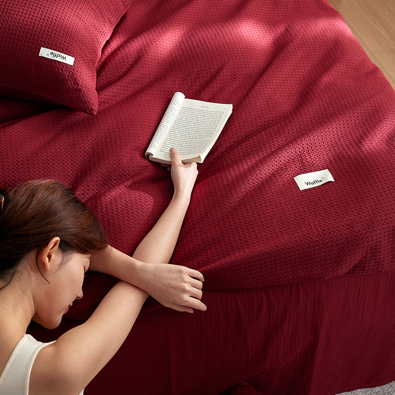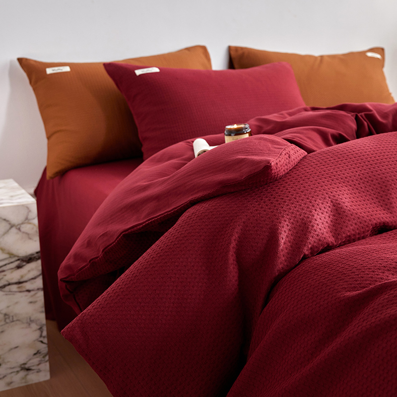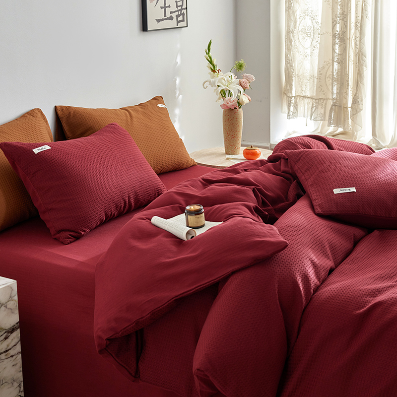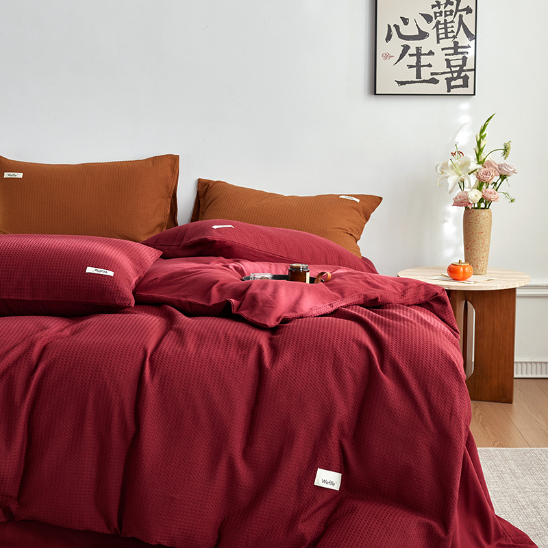 当前位置: 91家纺网 > 商品网购 > 床品套件 > 四件套 > 其它四件套 > 简家居 2024新款华夫格新颜色混搭系列四件套 安哥拉红色(枕套安哥拉红+栗子)