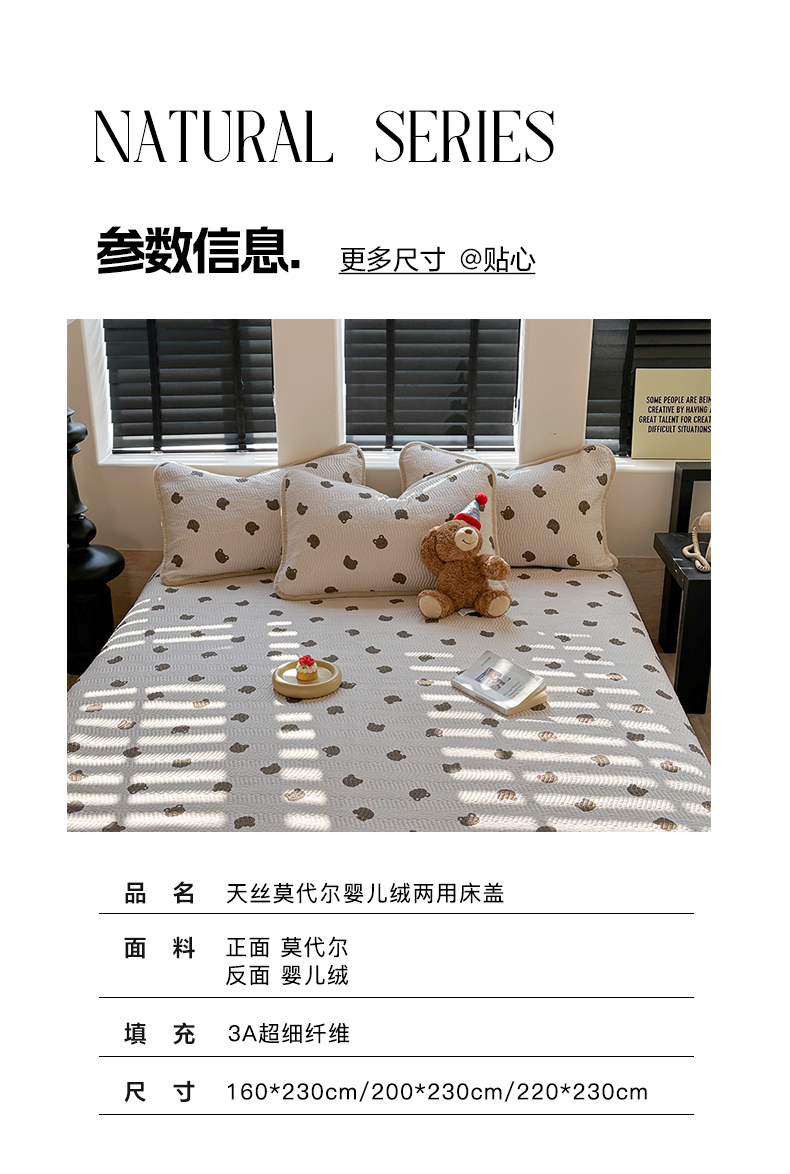 商品名称:麦伦家居 2024新款天丝莫代尔婴儿绒两用床盖 时光波点