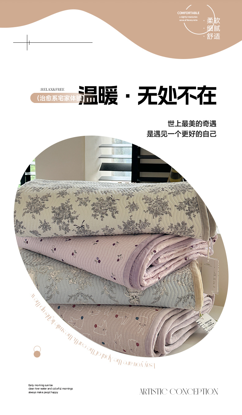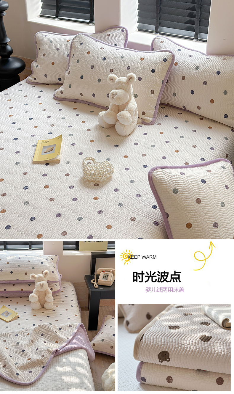 麦伦家居 2024新款天丝莫代尔婴儿绒两用床盖 时光波点