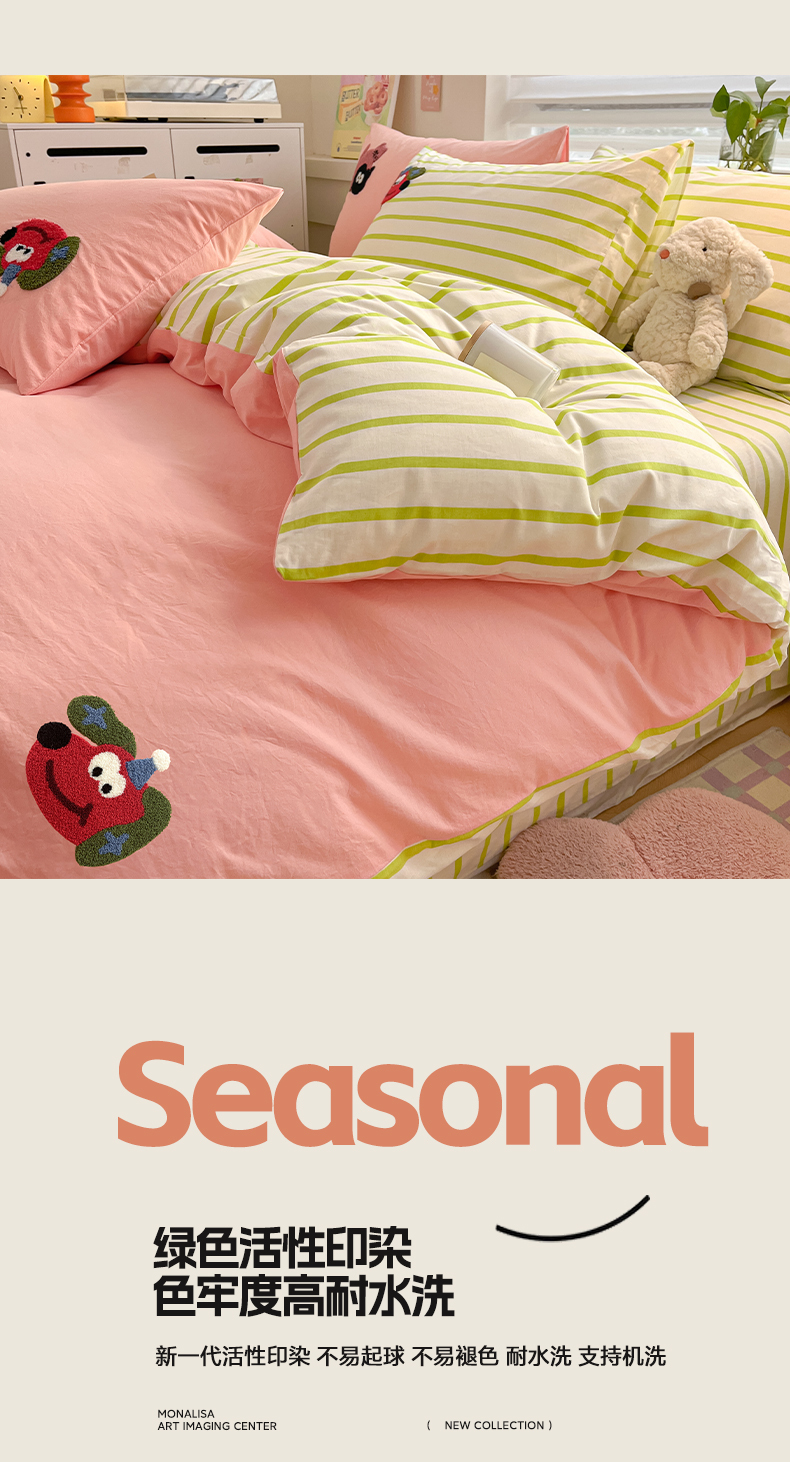 (总)雅居纺家纺 2022新款13070全棉印花四件套,波纹,多彩,简笔画,莓关系,奶油绿豹纹,倾心,数字
