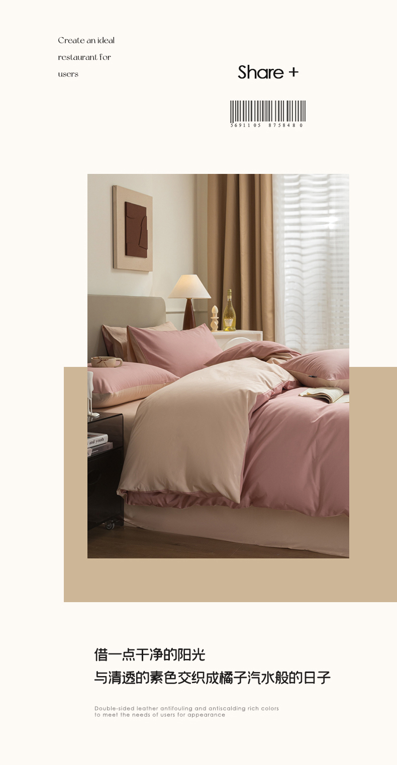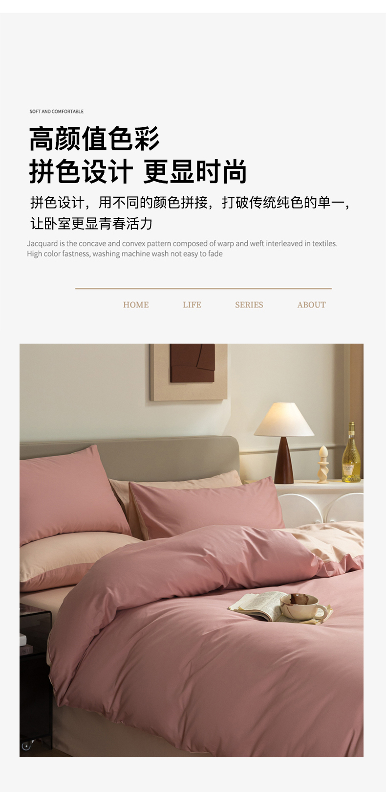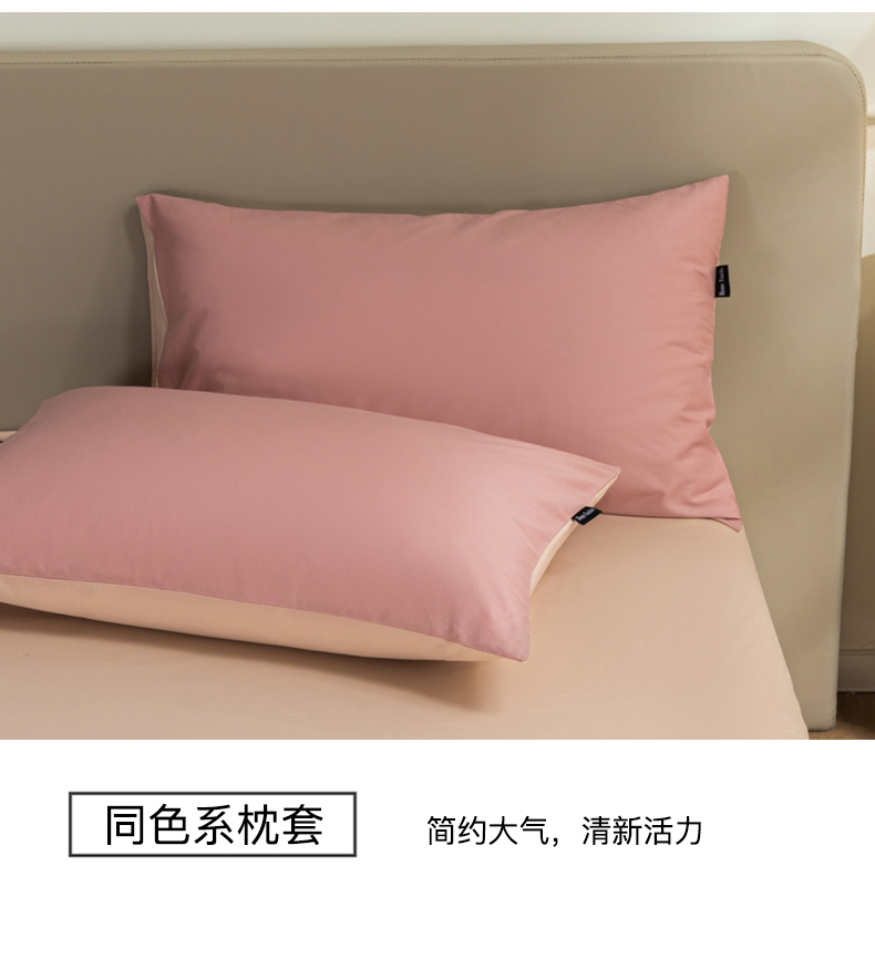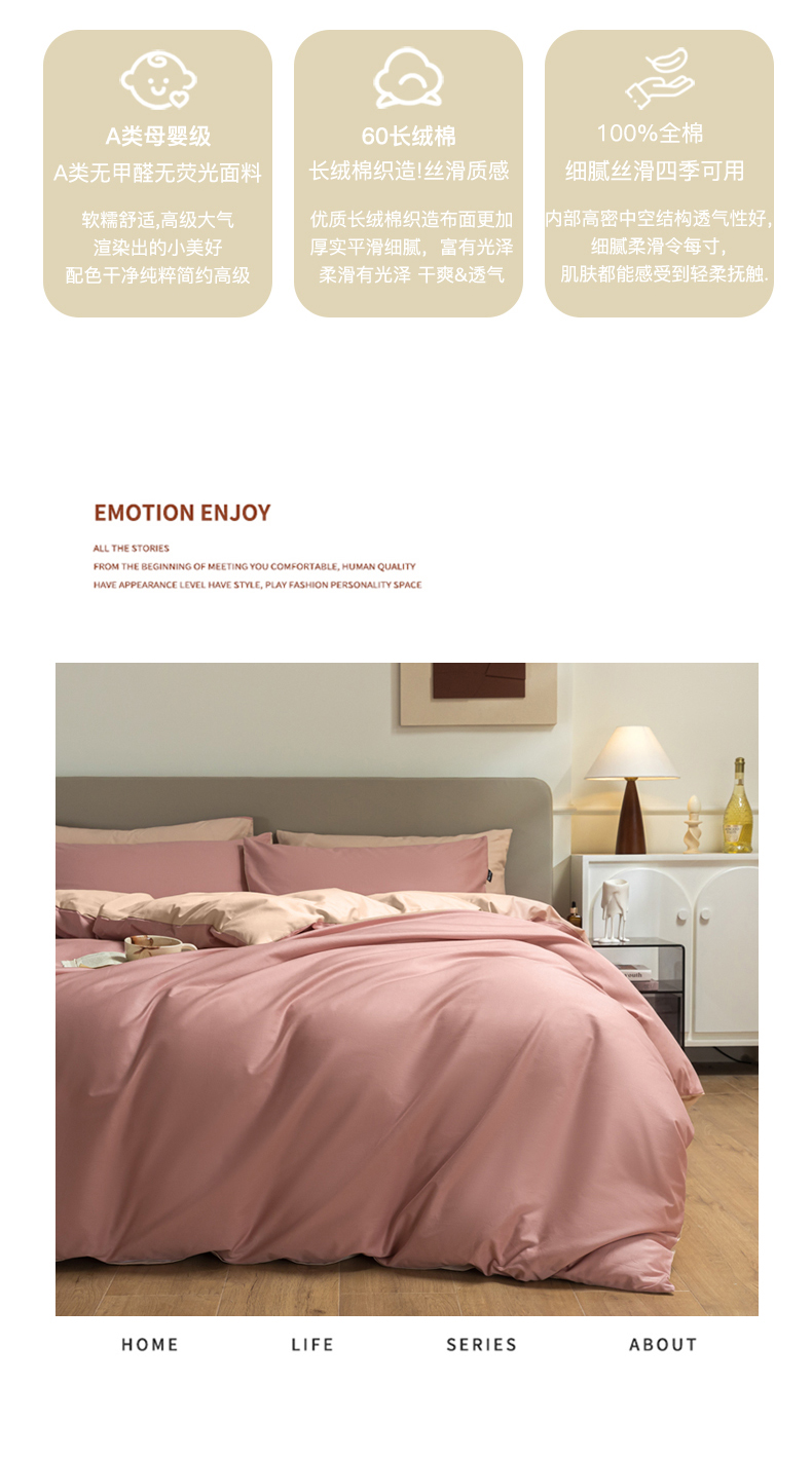 商品名称:卧趣家纺 2025新品全棉A类长绒棉纯色双拼四件套 蜜豆粉+白桃粉