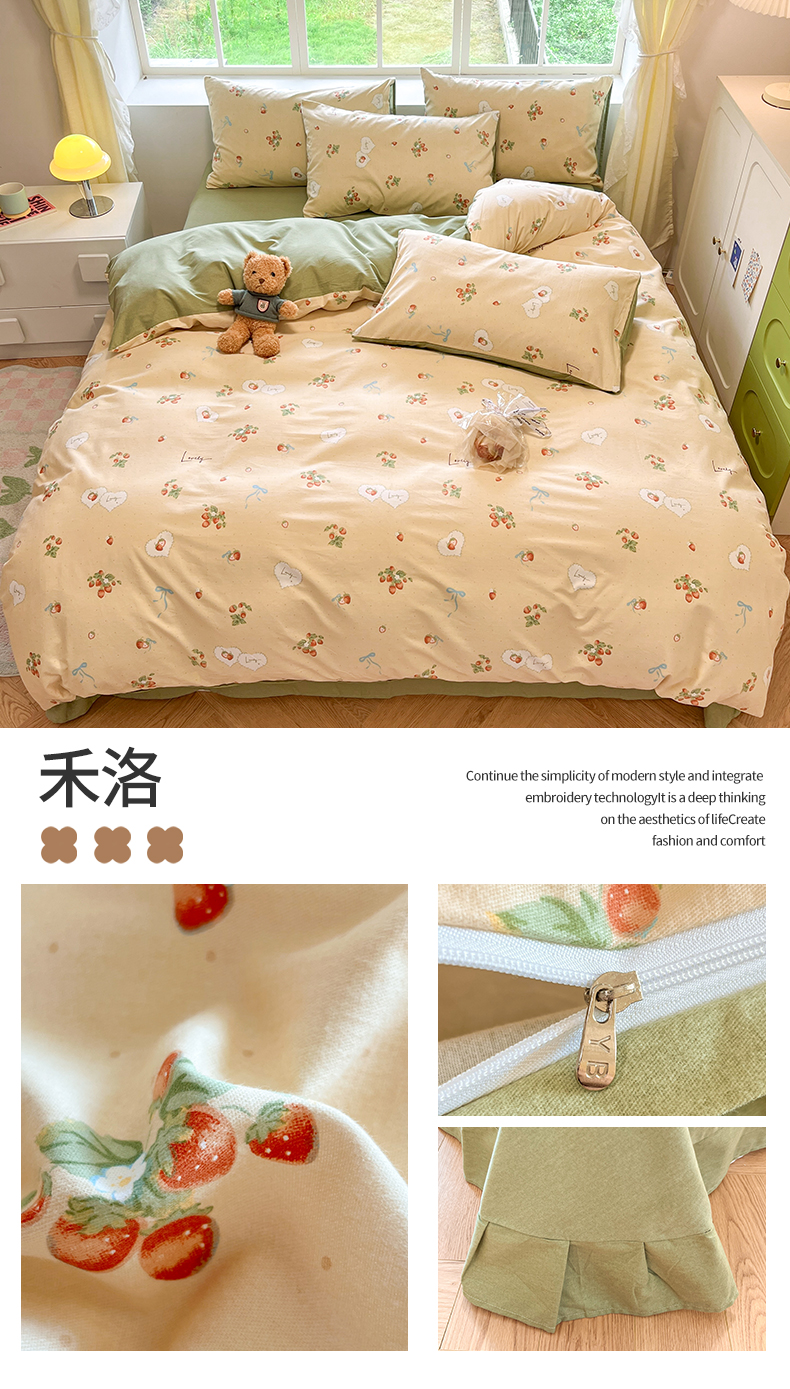 (总)悦织湾家纺 2025新款亲肤水洗棉印花四件套,草莓猫饼,春日与玫瑰,花宇时间,可可腊肠犬,清凉里,软糖猫,淘气小狗,甜樱恋曲,温暖粉心,小熊冰淇淋,小熊拉钩蓝,星梦蝶结,学习皮卡,摘樱桃的小熊