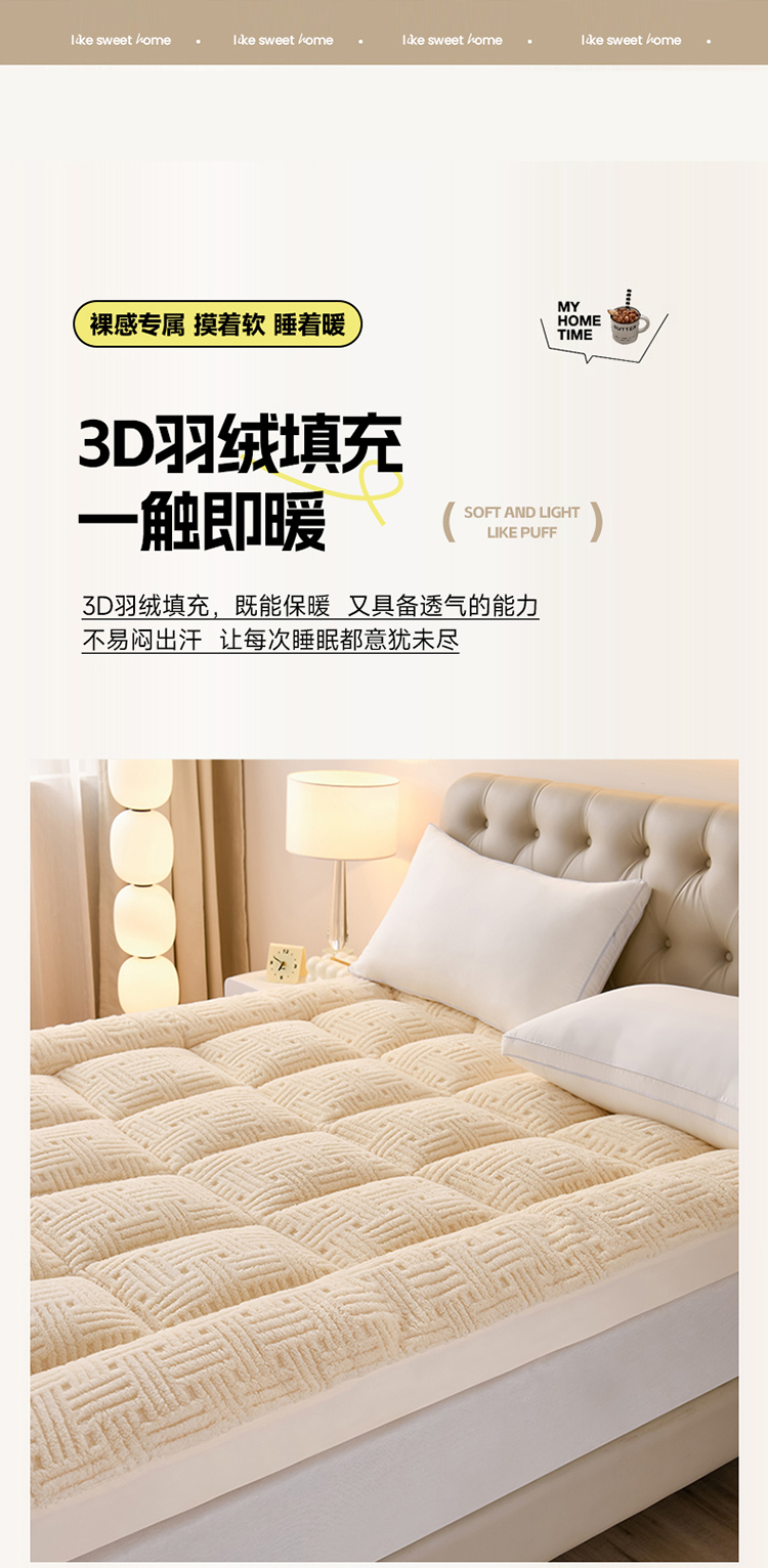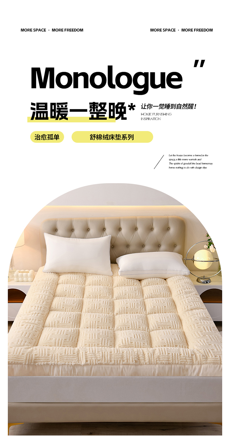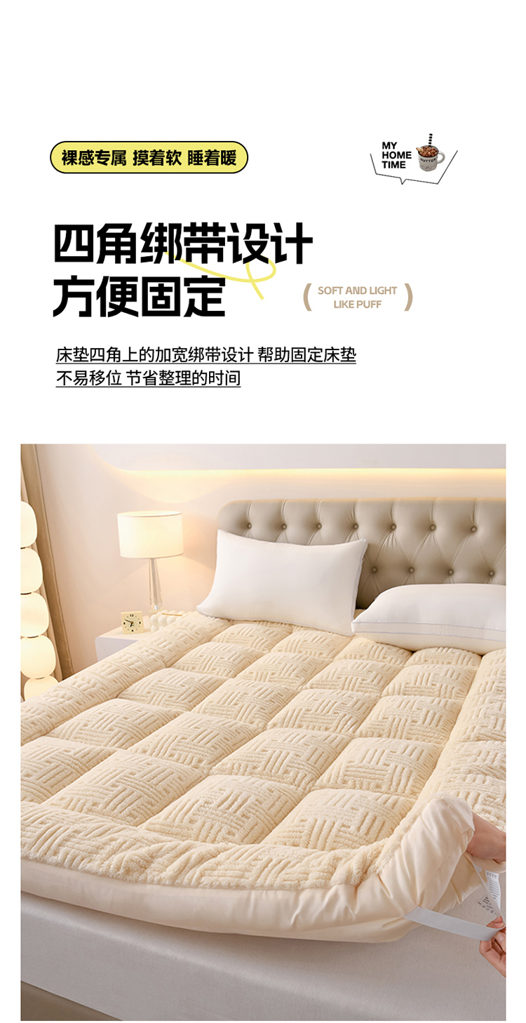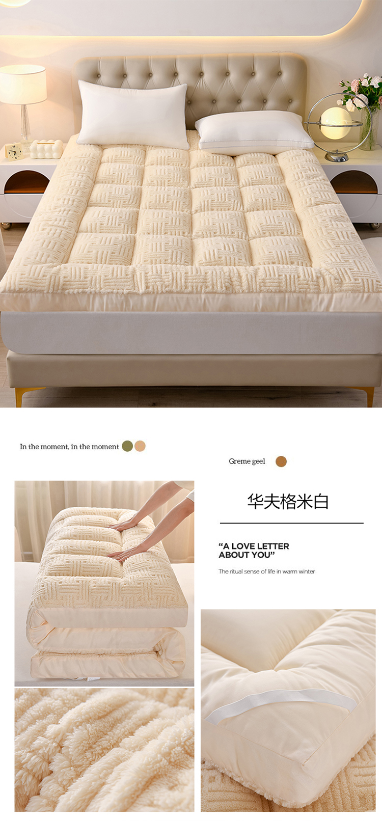 商品名称:(买家秀热款不断货)A类母婴级舒棉绒牛奶绒床垫子雪花绒床垫子牛奶绒床褥子羽丝绒床垫褥子多功能床垫软垫 华夫格米白