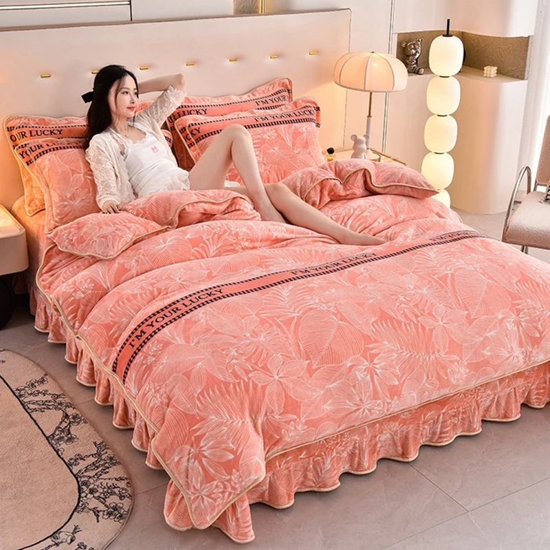 (买家秀 爆款不断货)A类母婴级牛奶绒四件套珊瑚绒四件套雪花绒四件套牛奶绒床裙四件套法莱绒床裙四件套 暖暖时光