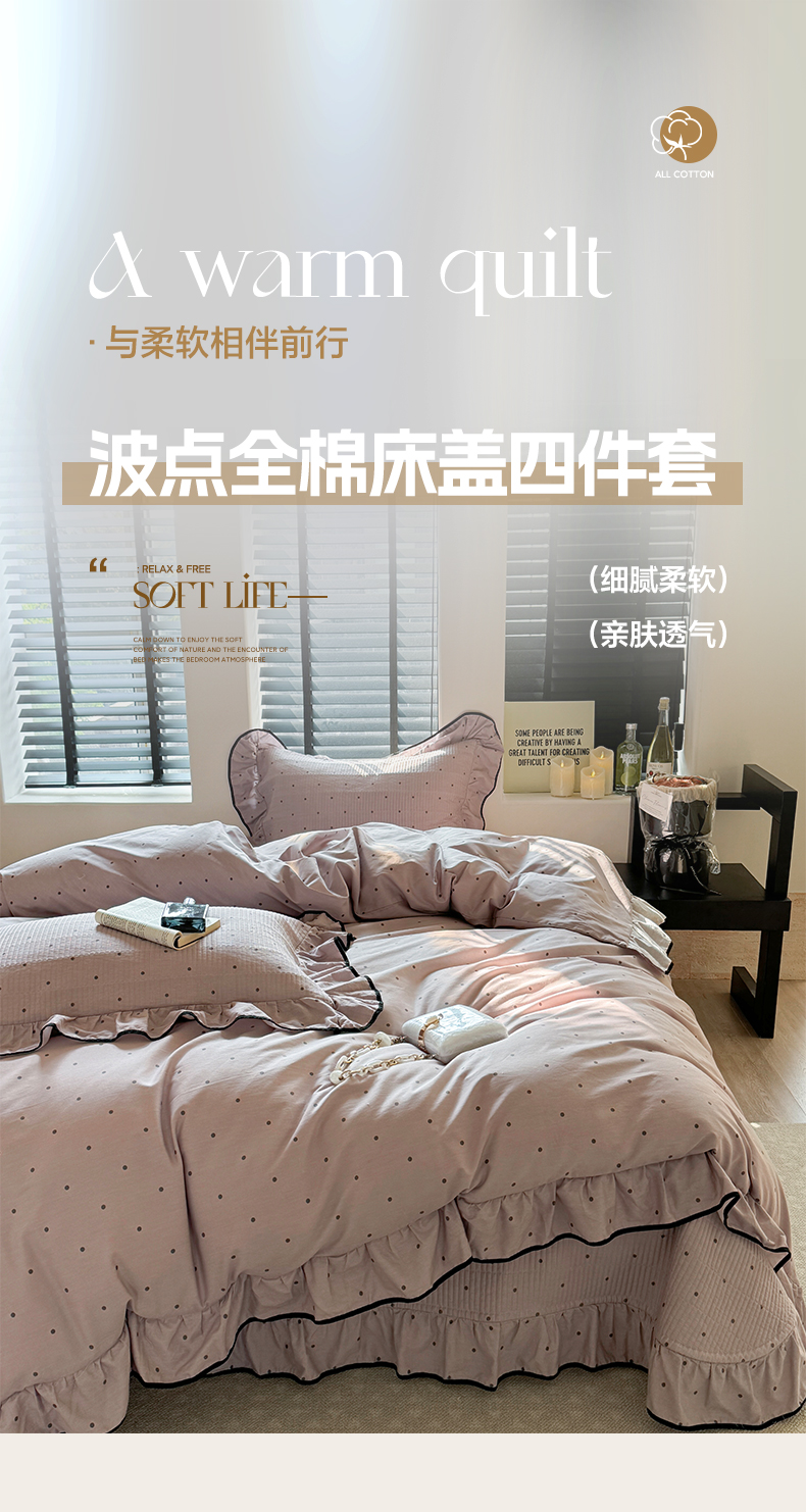 商品名称:(总)琳可家居 2025新款韩版花边双面全棉床盖三件套-波点