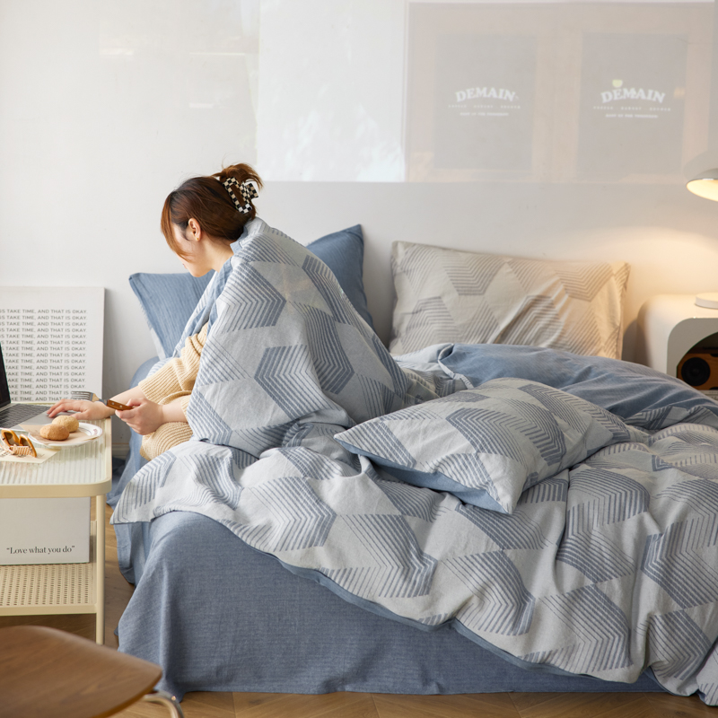 (总)简家居2025新款40支全棉色织空气棉四件套-寂意,寂意