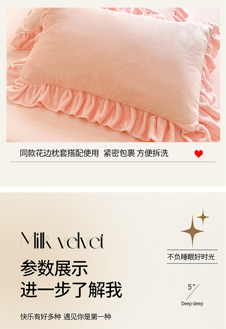 2025秋冬新款230g全消光牛奶绒床裙款四件套纯色蕾丝花边刺绣蕾丝床裙款床盖款法式蕾丝公主粉奶油风四件套 甜心—新芽绿