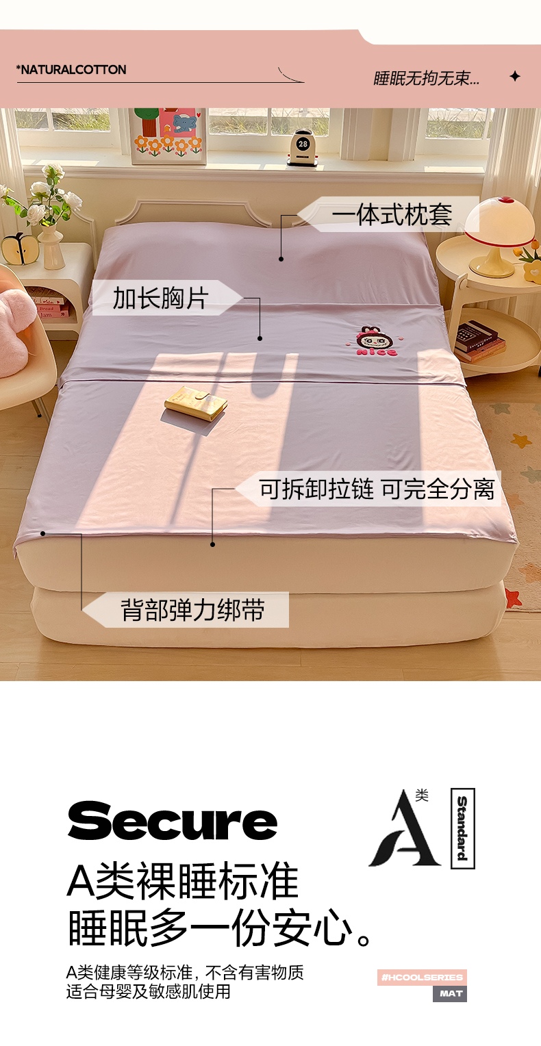 (总)柒星睡袋 2023新款A类棉小竺差旅神器火车卧铺酒店旅行隔脏睡袋,粉,灰,蓝,绿,紫