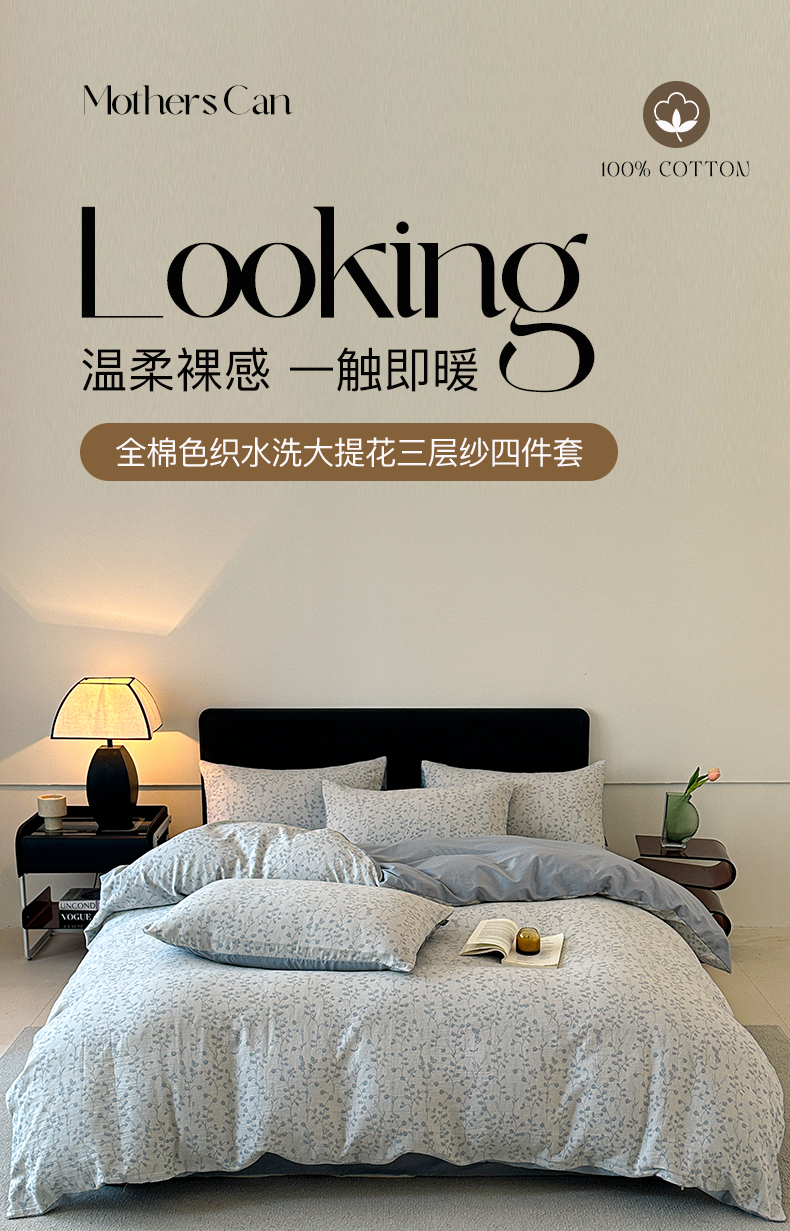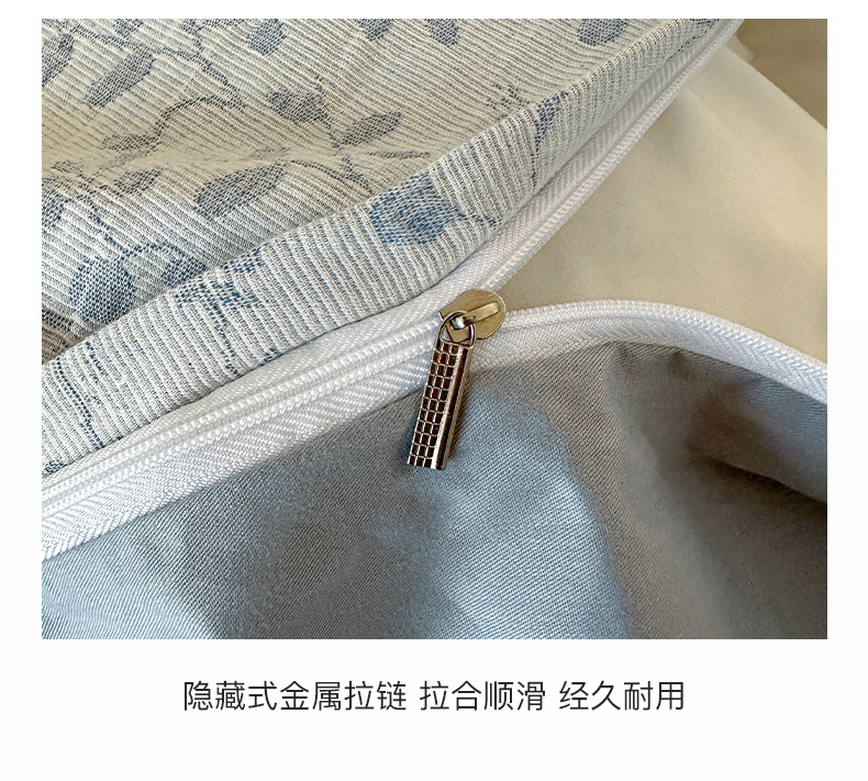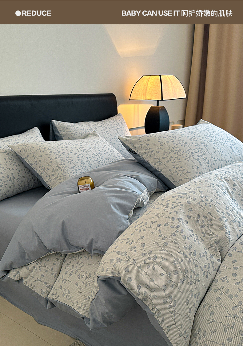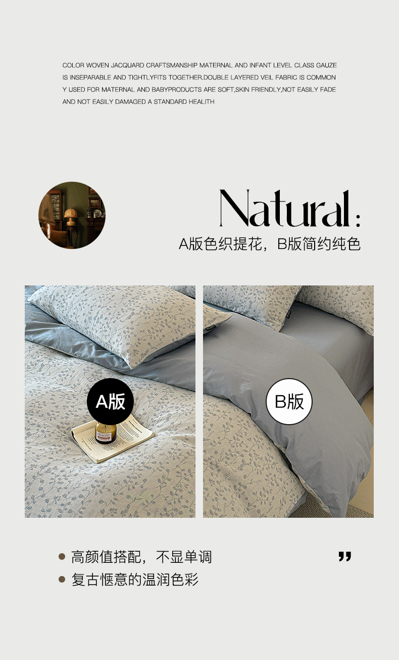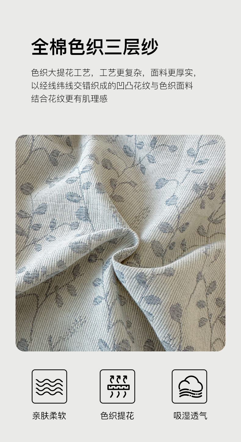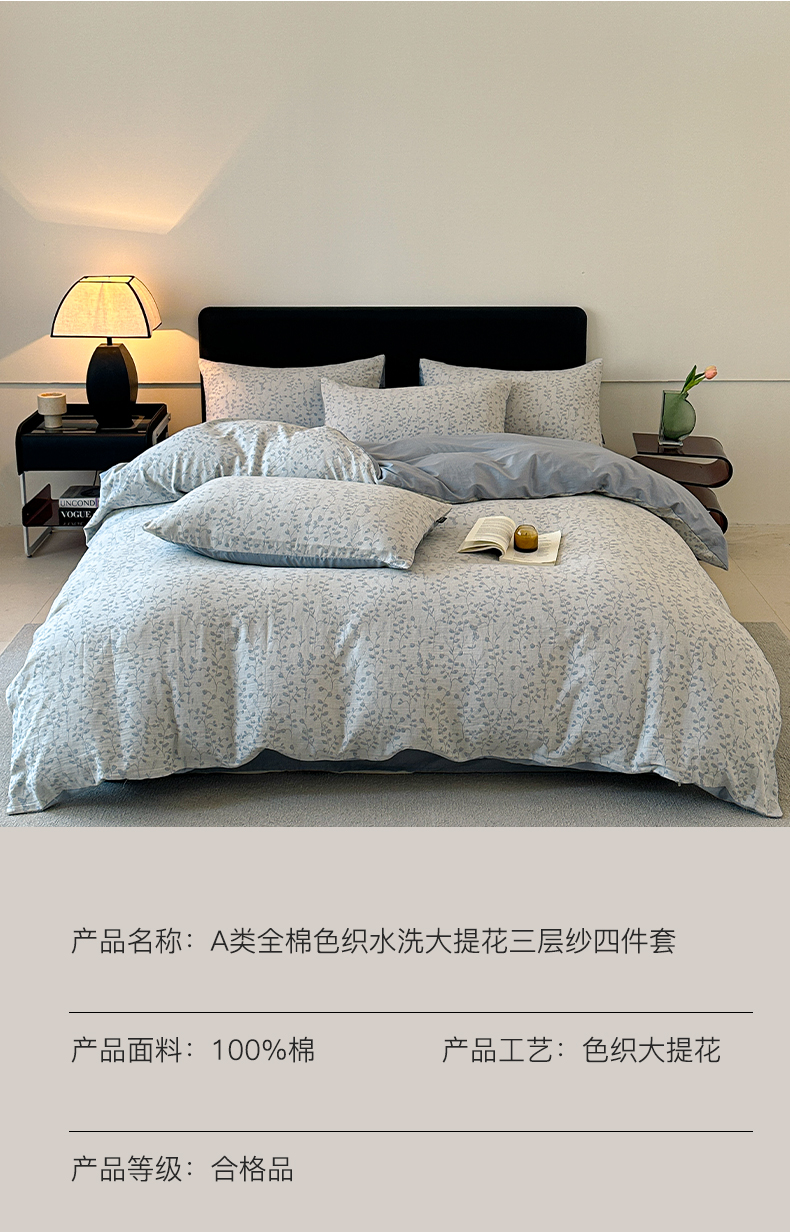 商品名称:格里芬家纺 2025新款全棉色织水洗三层纱提花纯棉四件套 春树-兰