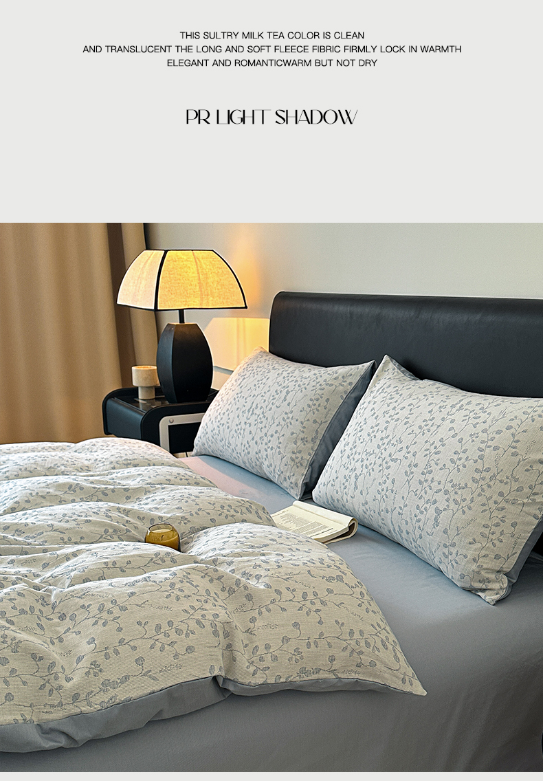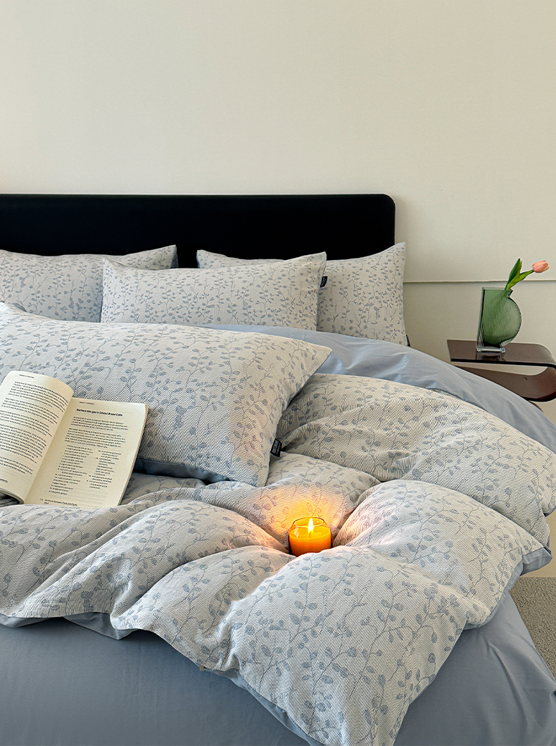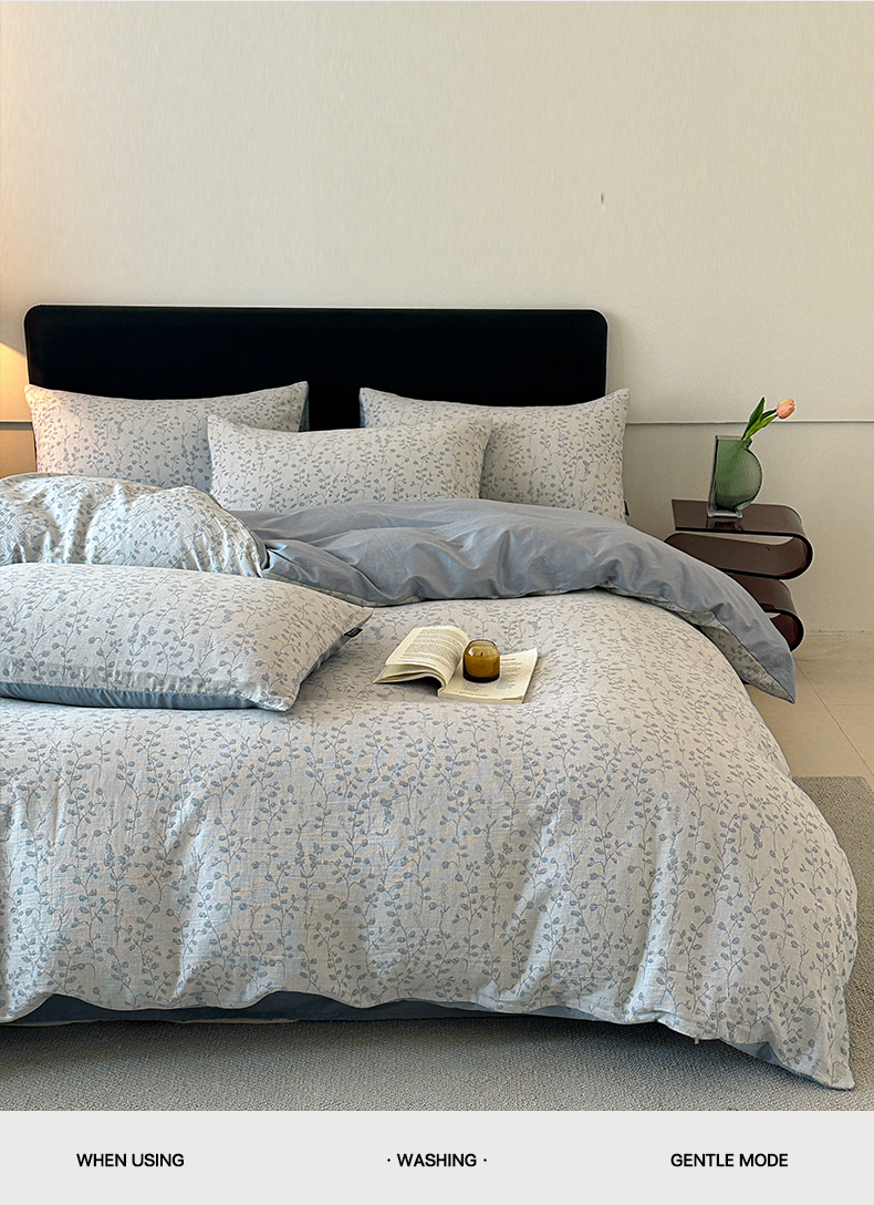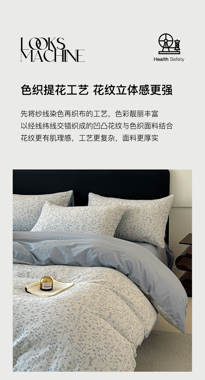 格里芬家纺 2025新款全棉色织水洗三层纱提花纯棉四件套 春树-兰