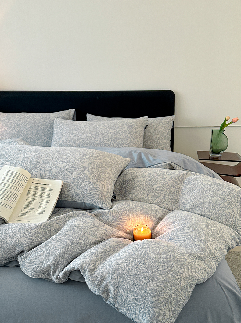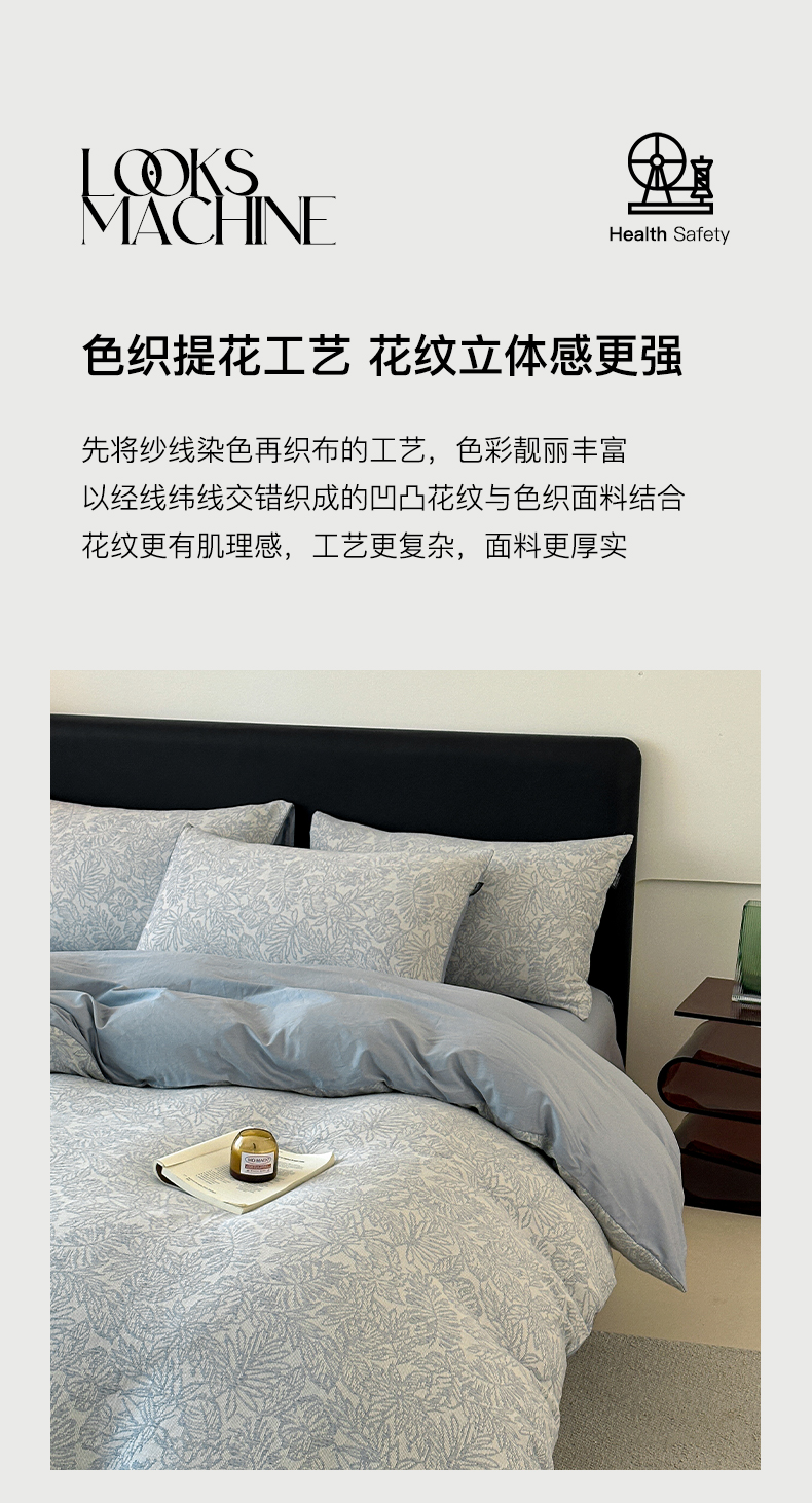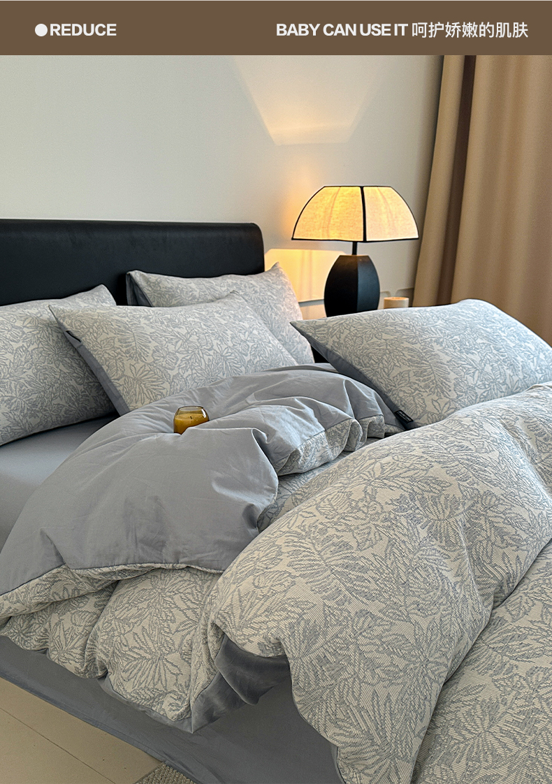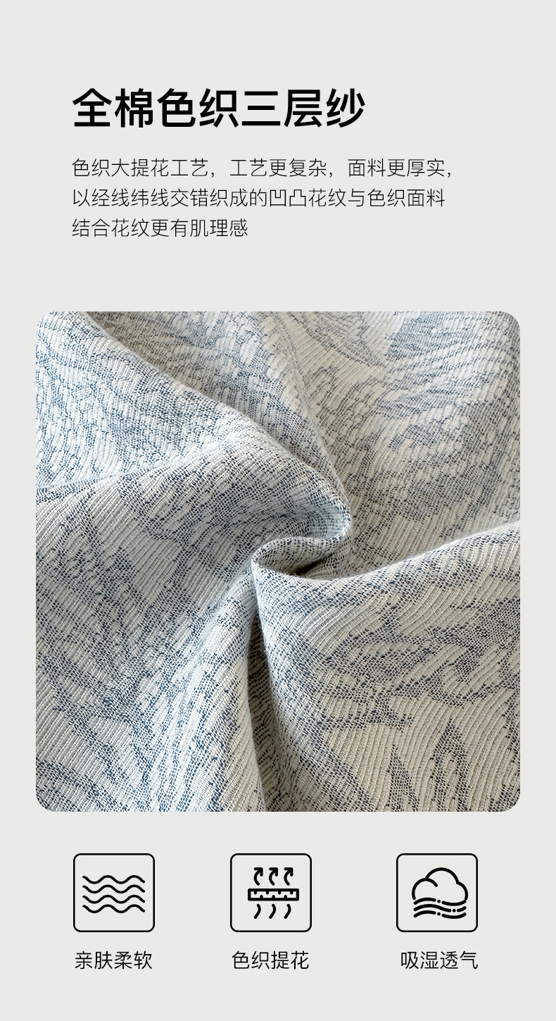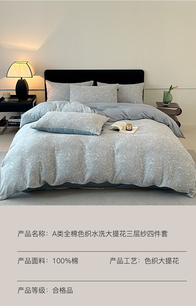 商品名称:格里芬家纺 2025新款全棉色织水洗三层纱提花纯棉四件套 森林-兰