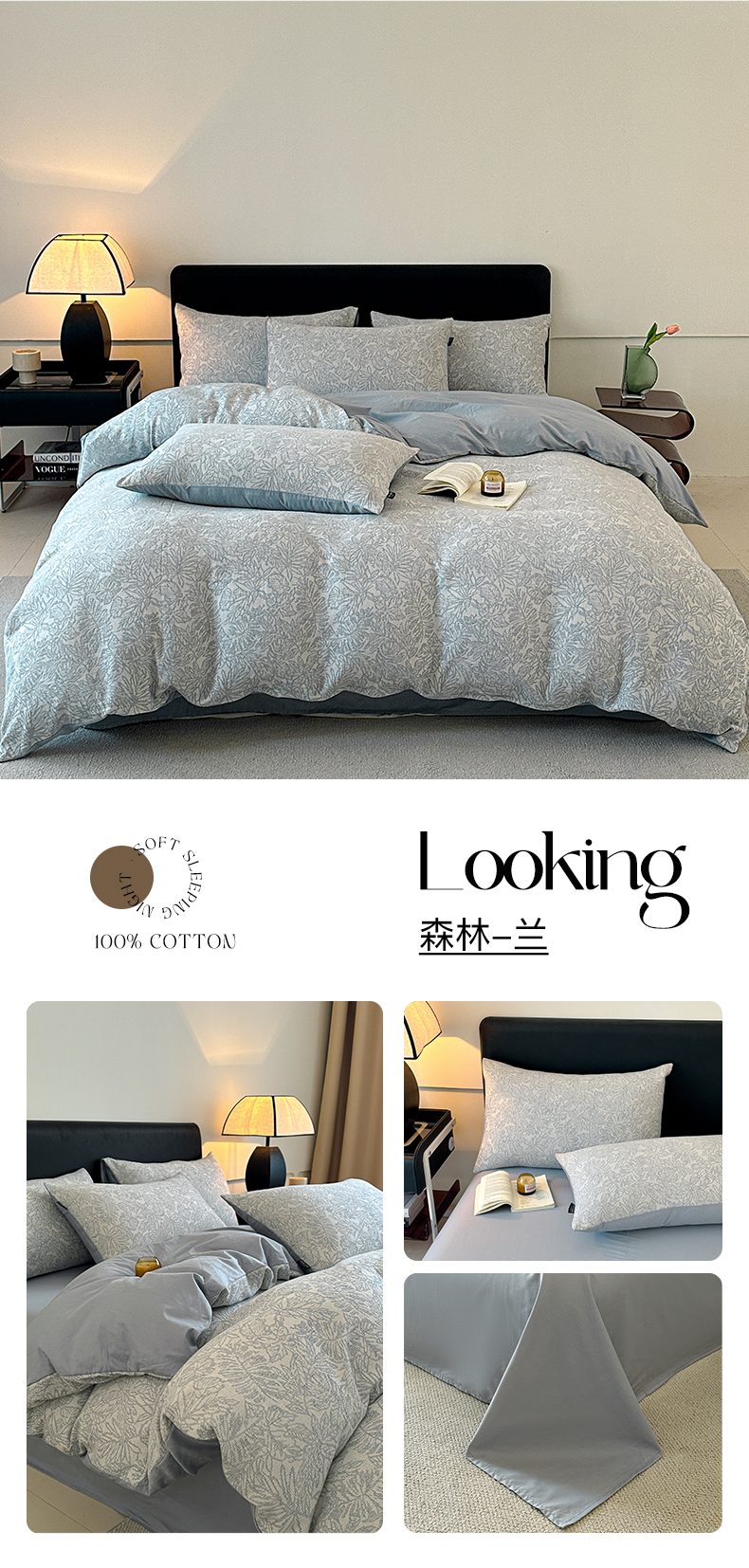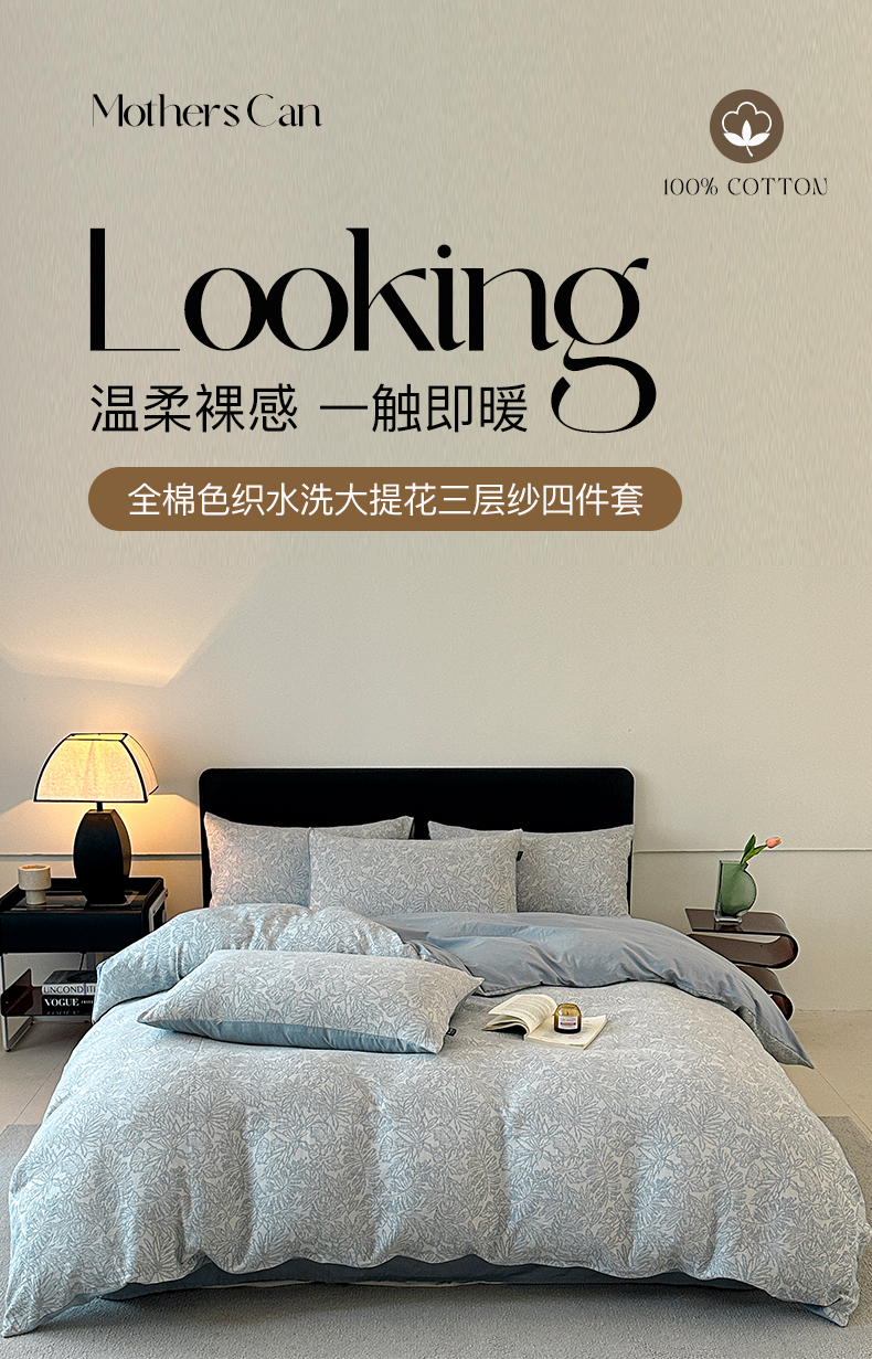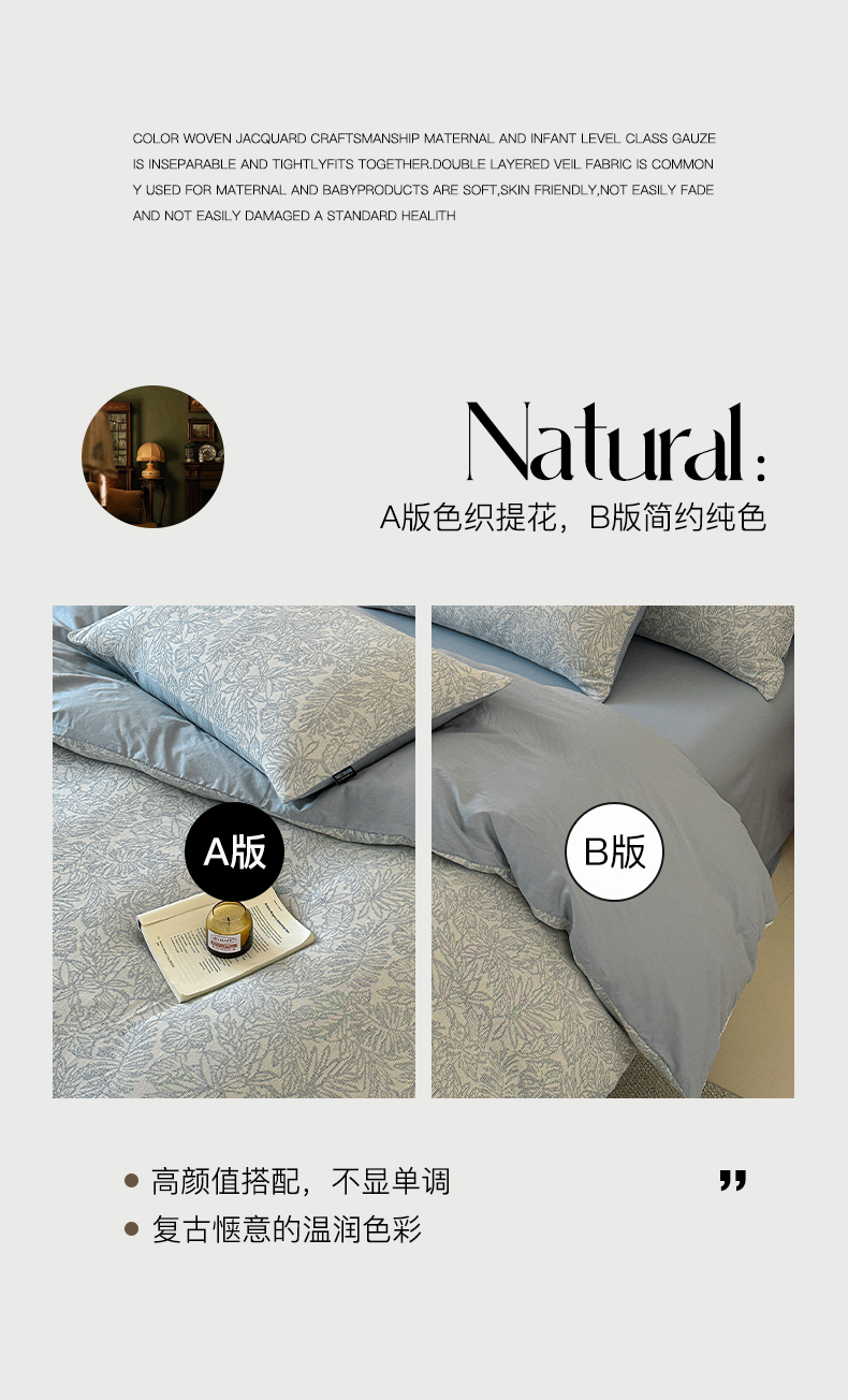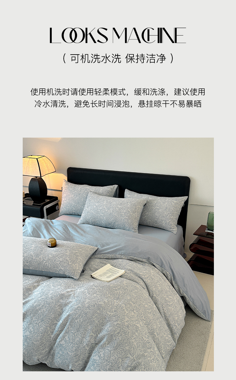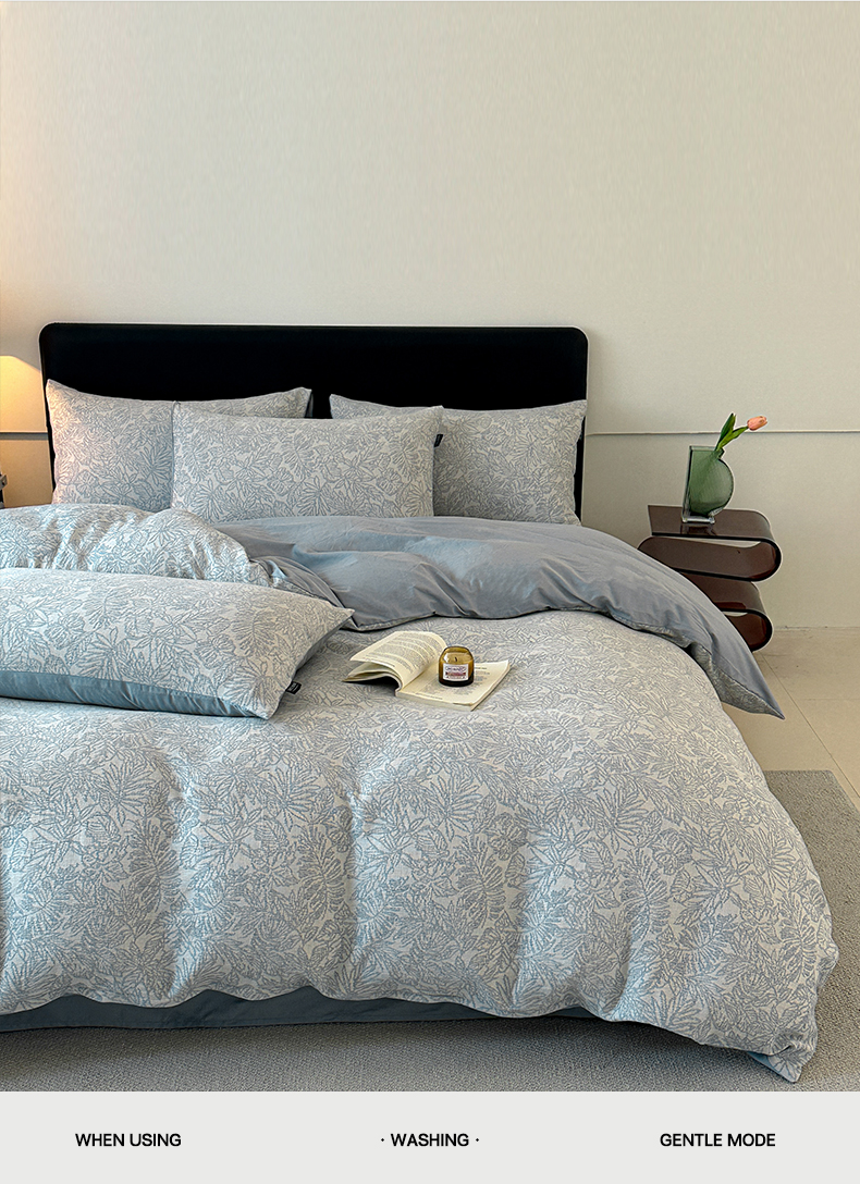 商品名称:格里芬家纺 2025新款全棉色织水洗三层纱提花纯棉四件套 森林-兰