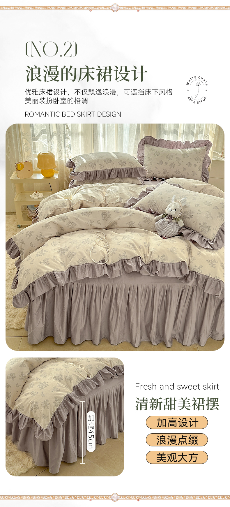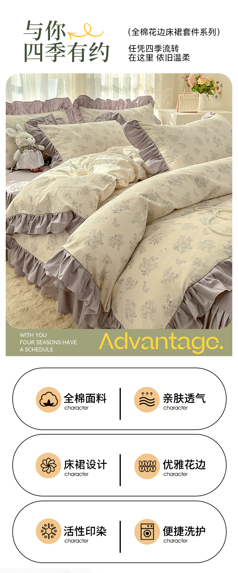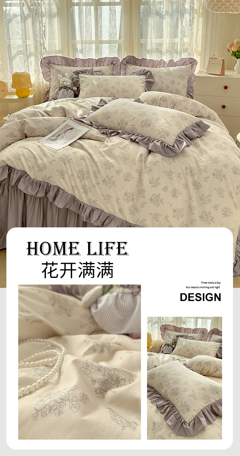 当前位置: 91家纺网 > 商品网购 > 床品套件 > 四件套 > 全棉普通四件套 > 忘忧草 2025新款全棉小清新床裙四件套 花开满满
