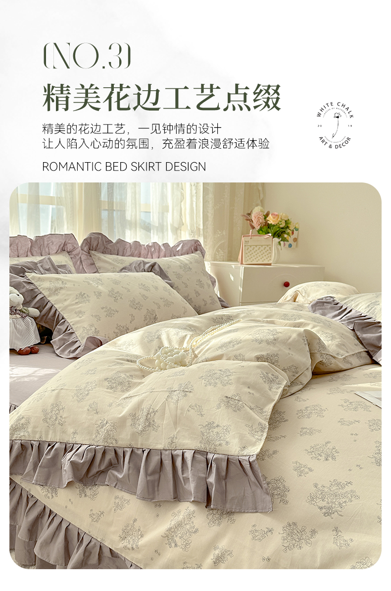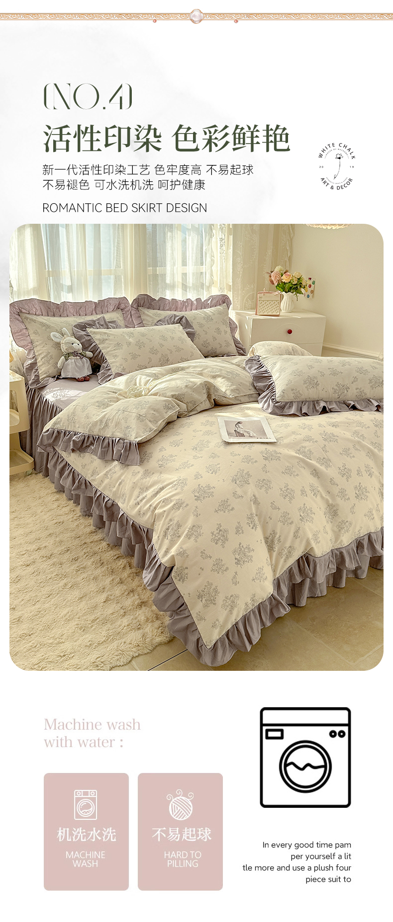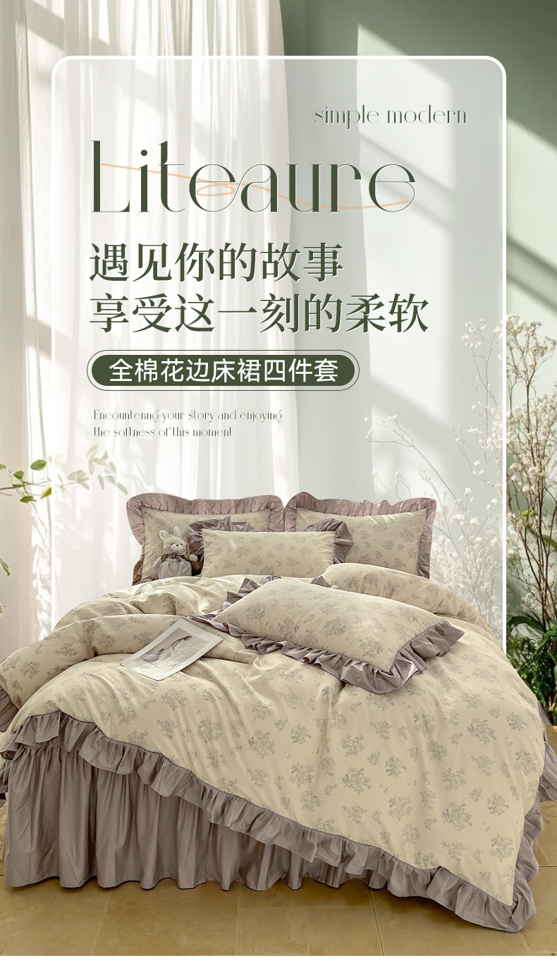 当前位置: 91家纺网 > 商品网购 > 床品套件 > 四件套 > 全棉普通四件套 > 忘忧草 2025新款全棉小清新床裙四件套 花开满满