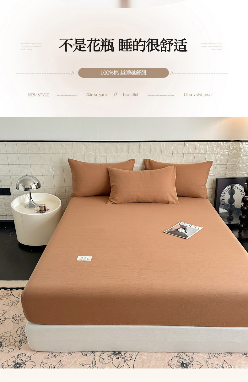 眠博士 2025新款简约纯色纯棉40支单床笠系列 40支床笠-咖啡色,40支床笠-咖啡色