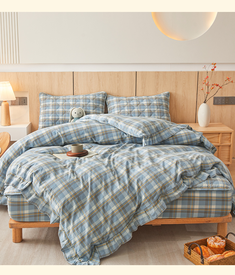 (总)糯米猪家纺 2025新款全棉色织水洗棉床裙,格纹 灰,简兮 兰,兰黄大格,晴空 灰,时尚 灰,雅致 兰
