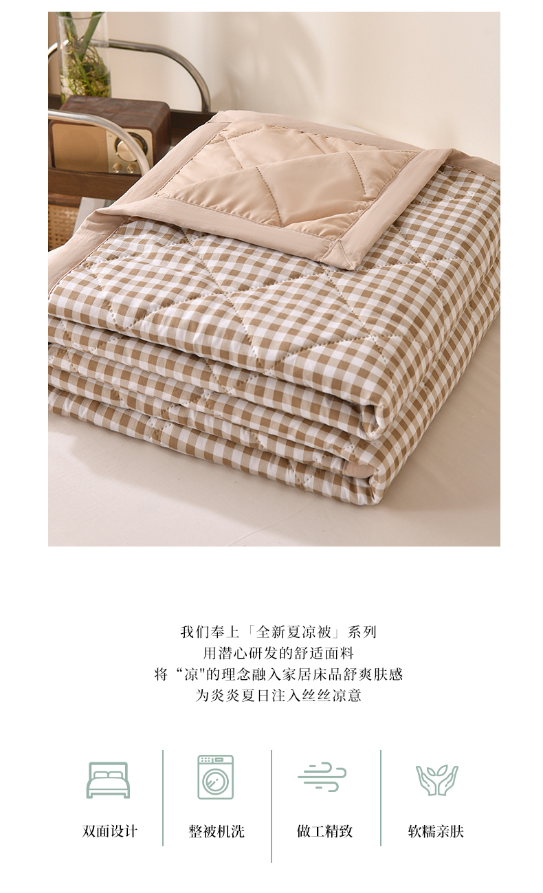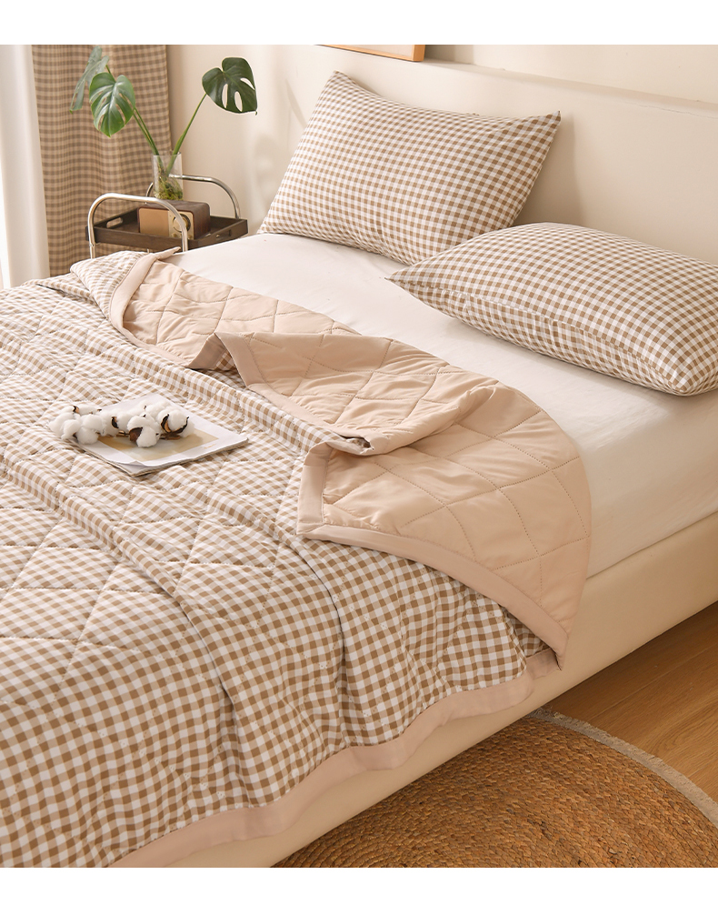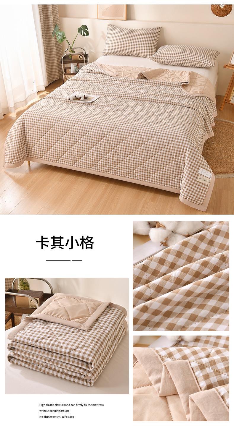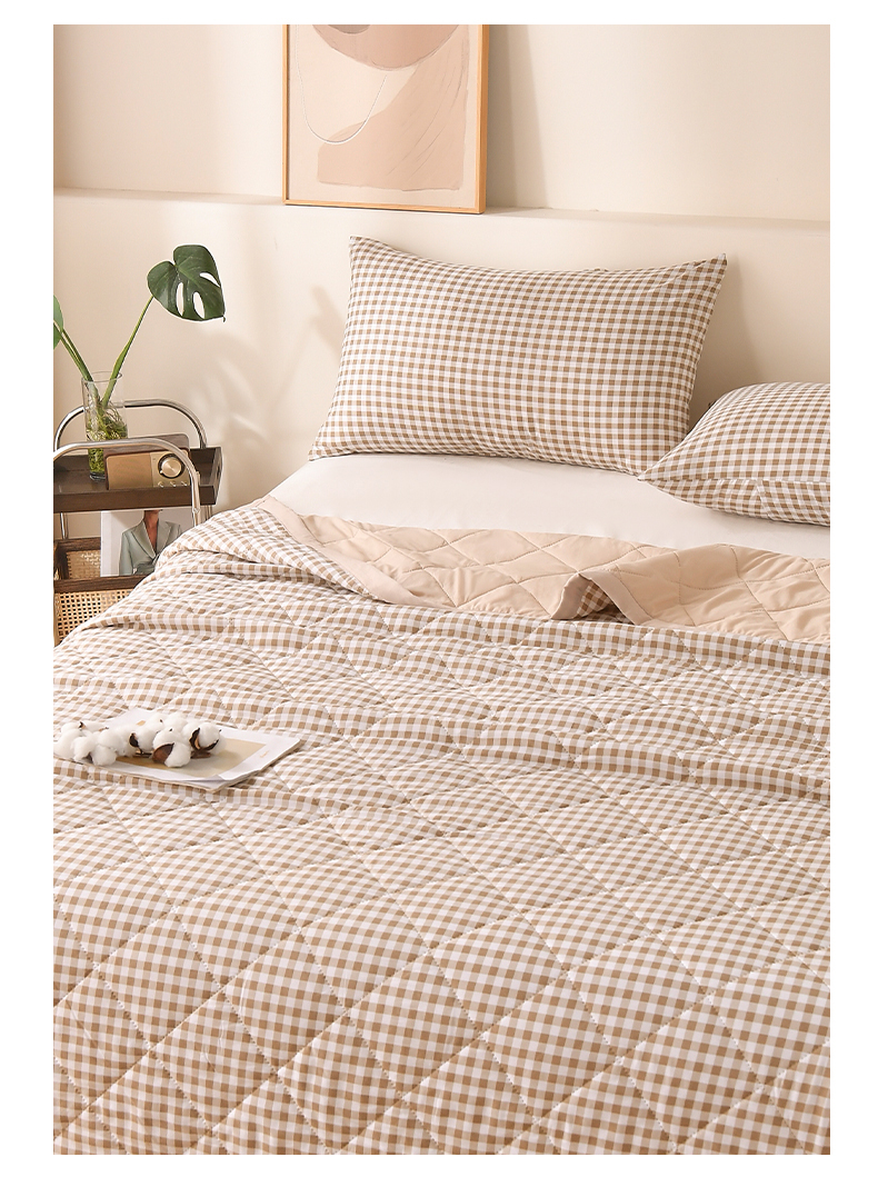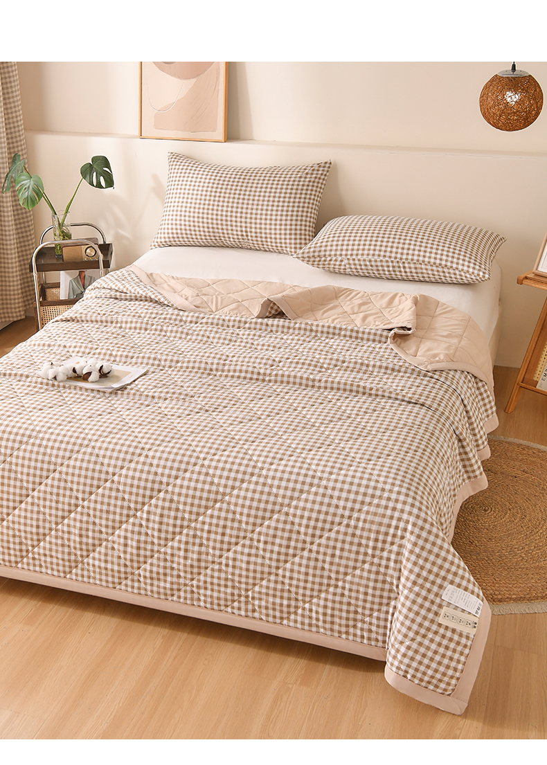 商品名称:培童 2025水洗棉夏被夏凉被空调被超声波压花礼品直播引流爆款 卡其小格