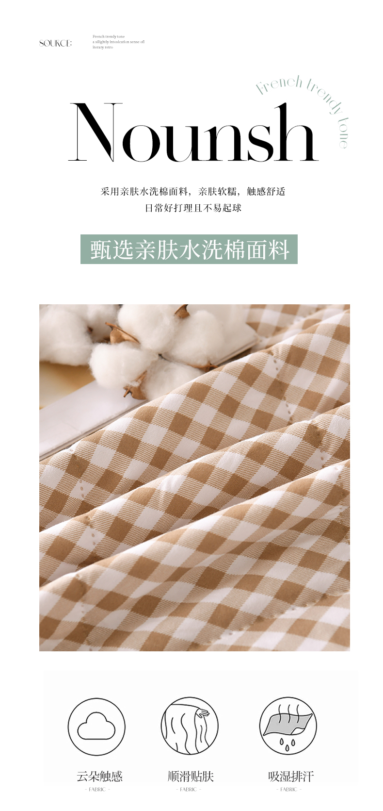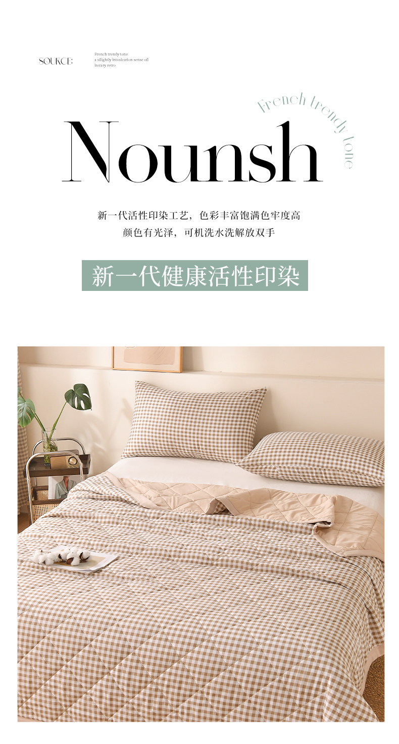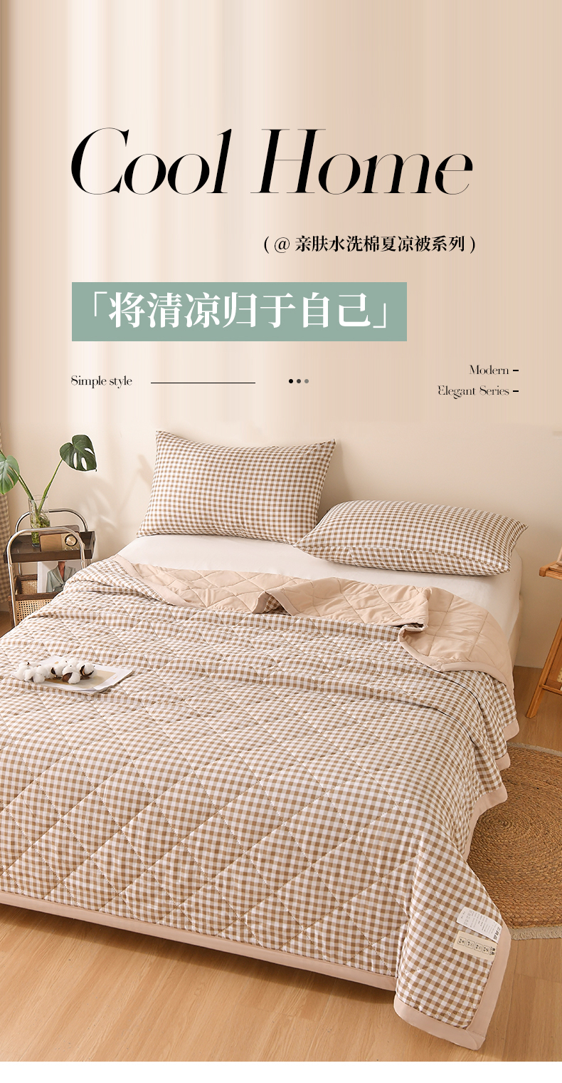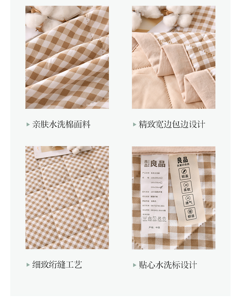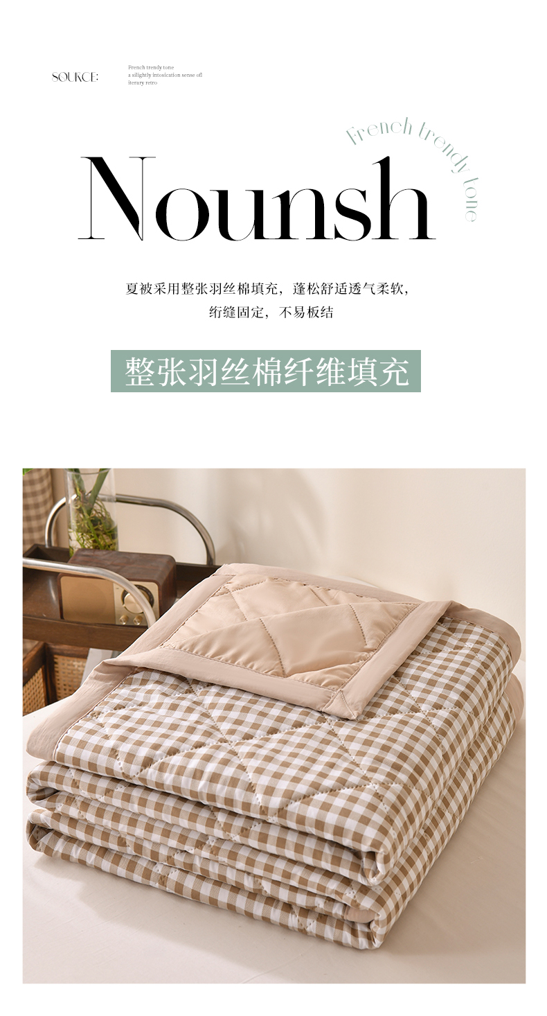 商品名称:培童 2025水洗棉夏被夏凉被空调被超声波压花礼品直播引流爆款 卡其小格