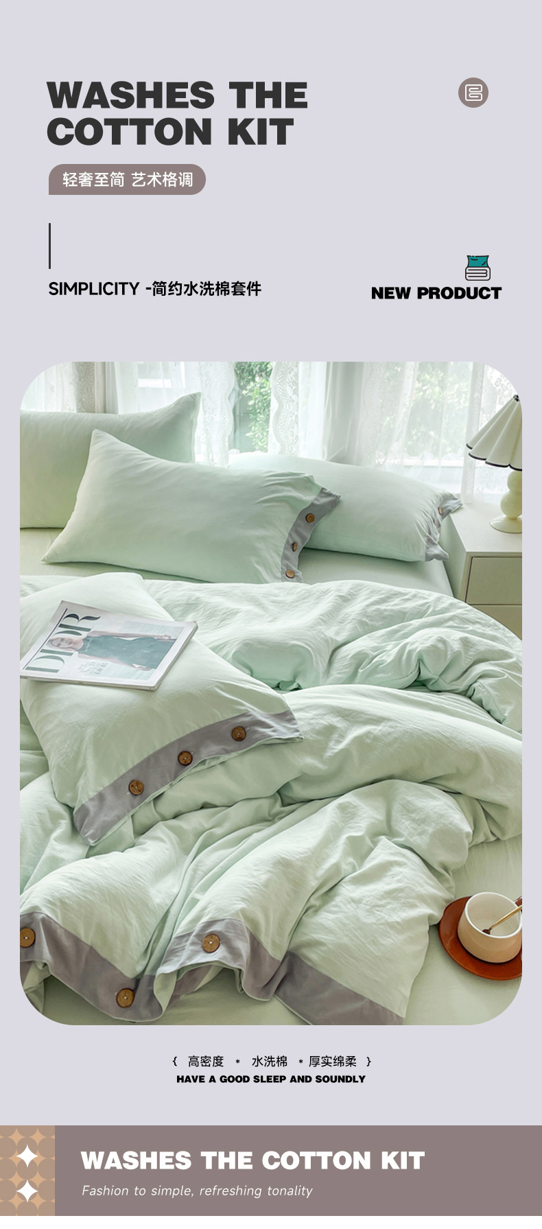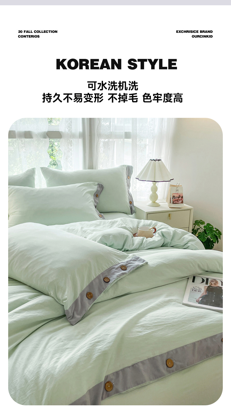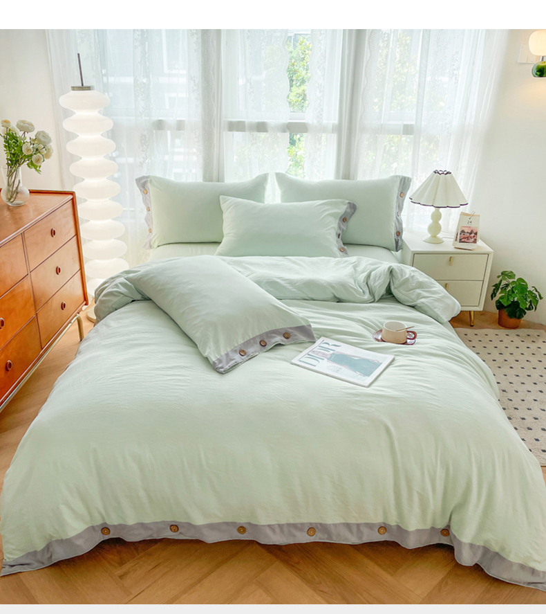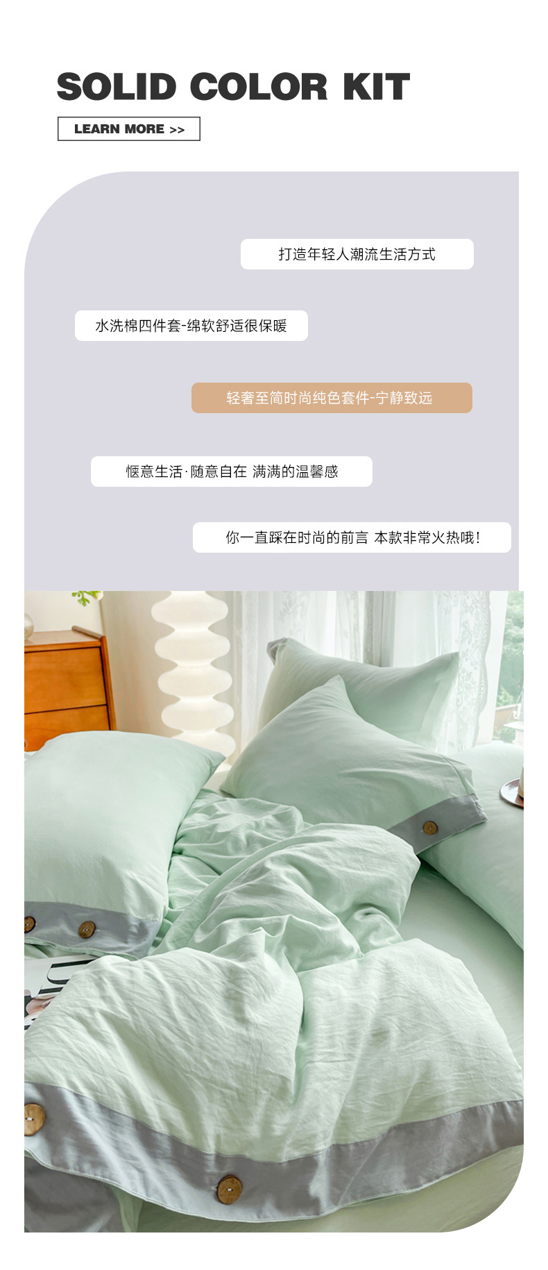 当前位置: 91家纺网 > 商品网购 > 床品套件 > 四件套 > 水洗棉四件套 > 库里梦家纺 2025新款贴边纽扣式纯色水洗棉四件套 贴边纽扣-湖蓝