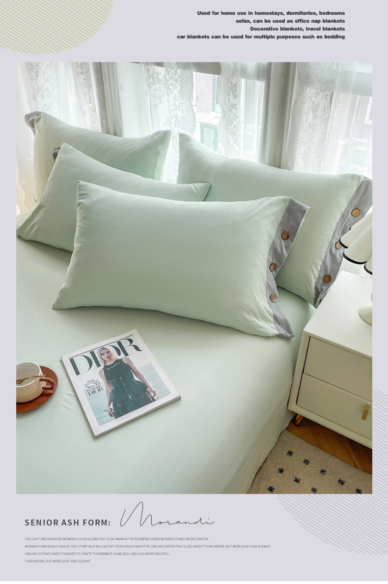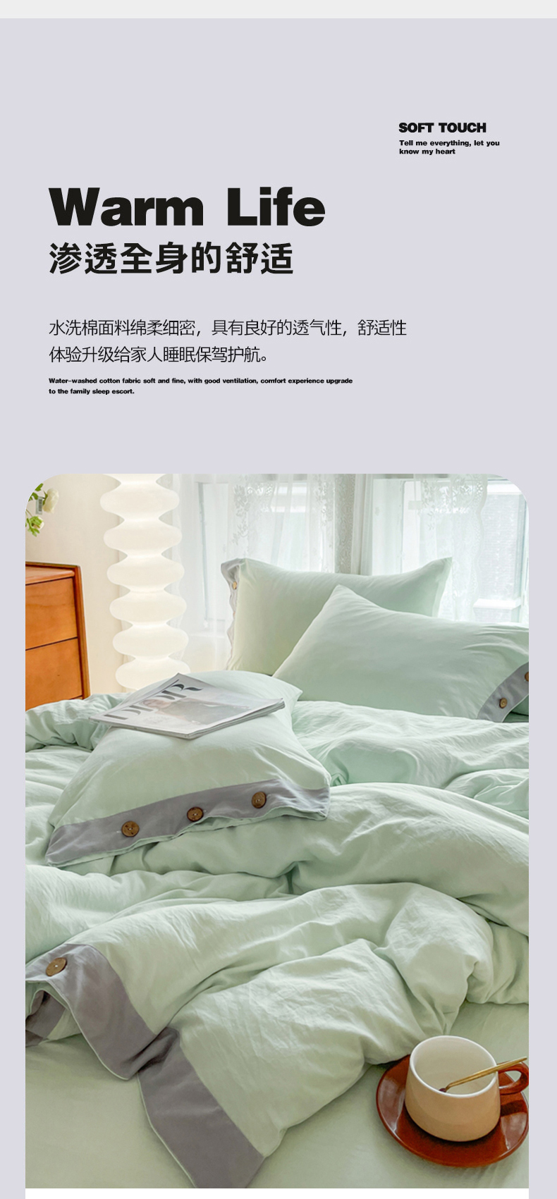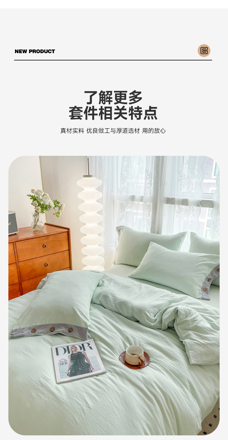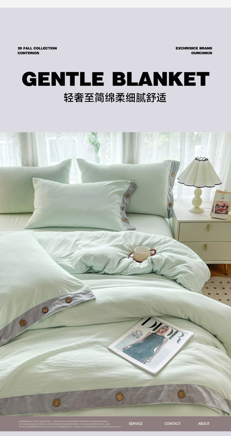 当前位置: 91家纺网 > 商品网购 > 床品套件 > 四件套 > 水洗棉四件套 > 库里梦家纺 2025新款贴边纽扣式纯色水洗棉四件套 贴边纽扣-湖蓝