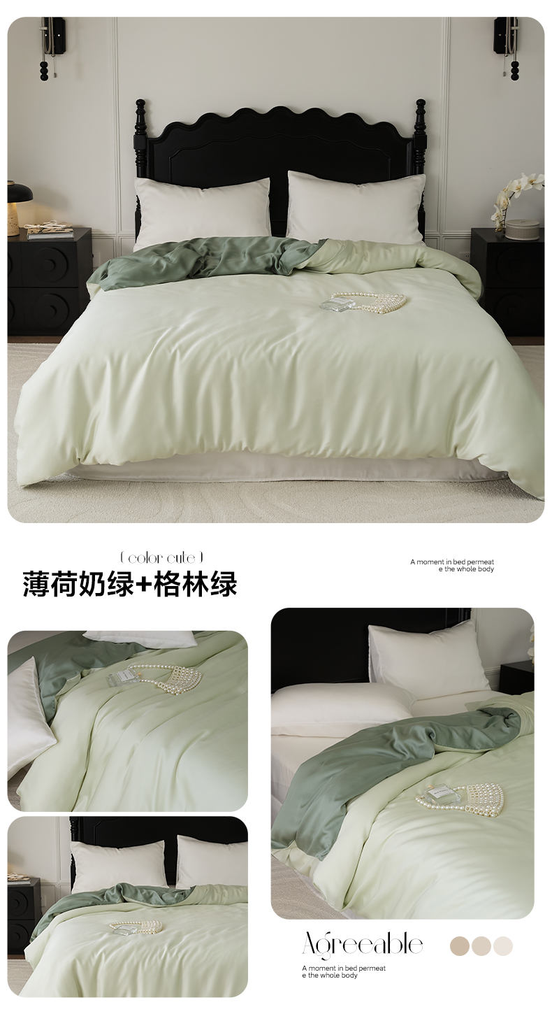 商品名称:EH家居 2025春夏天丝纯色单被套 薄荷奶绿+格林绿