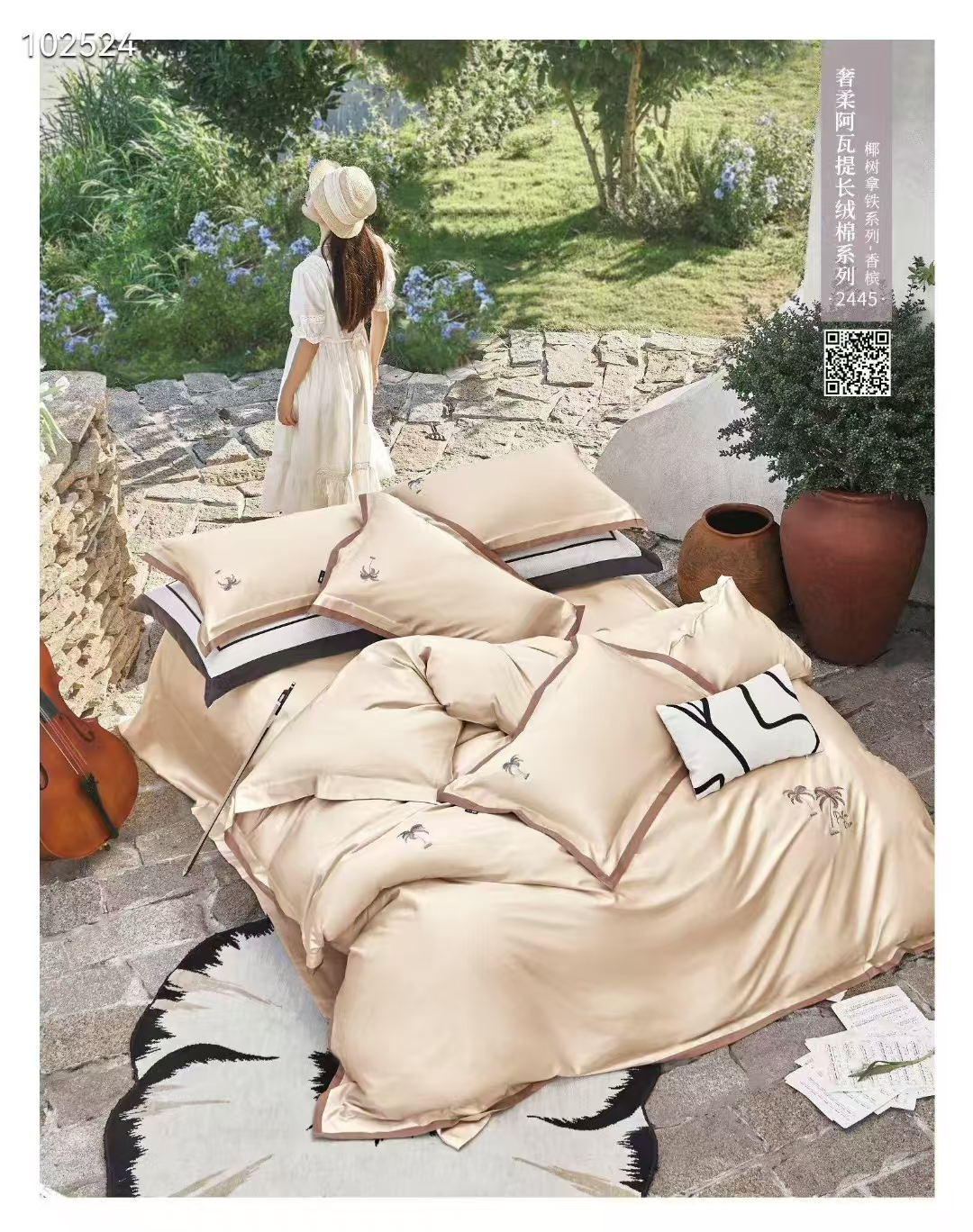 玖玖爱家纺 2025新款120支奢柔阿瓦提长绒棉四件套-椰树拿铁 椰树拿铁香槟