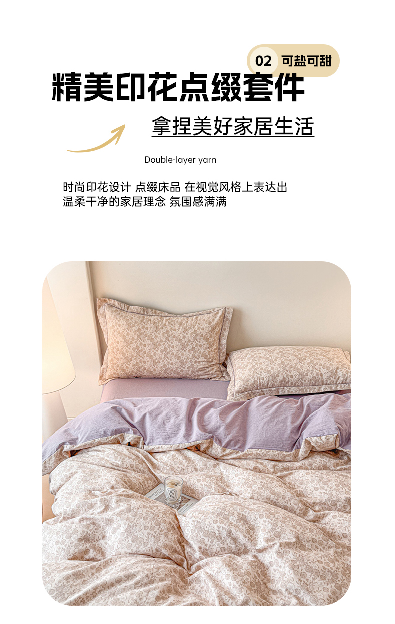 喜四方 2024新款全棉磨毛全棉印花四件套曼迪-紫,曼迪-紫