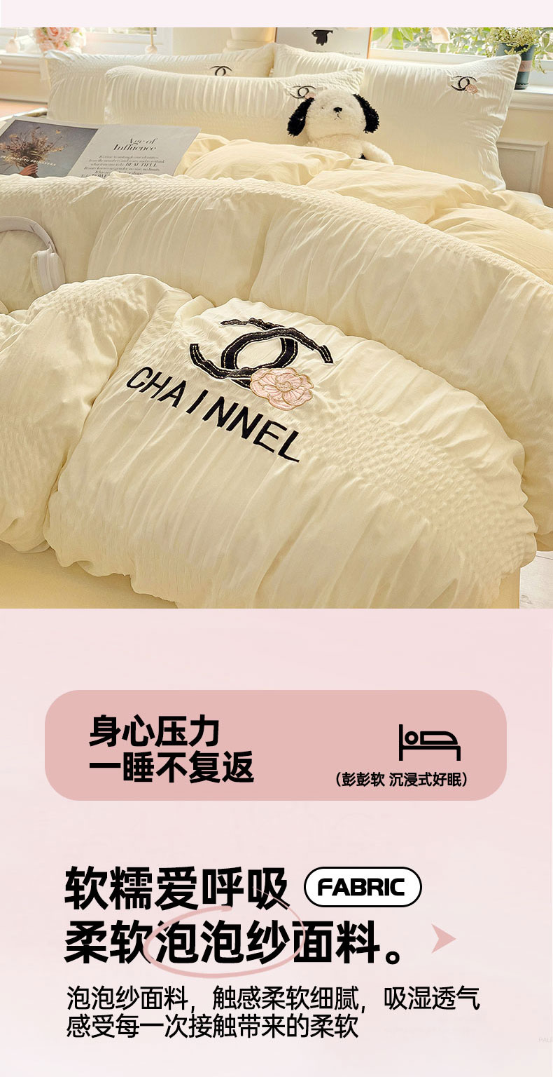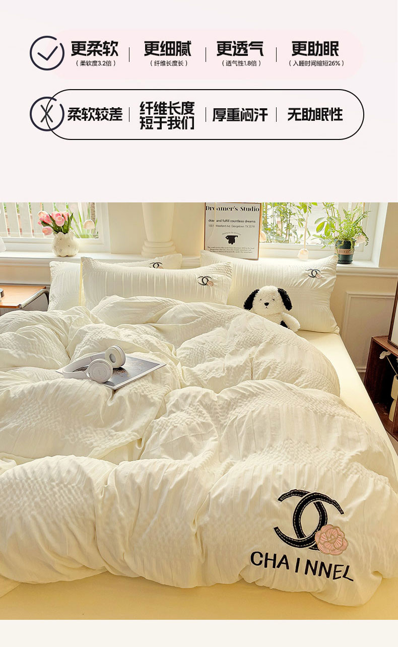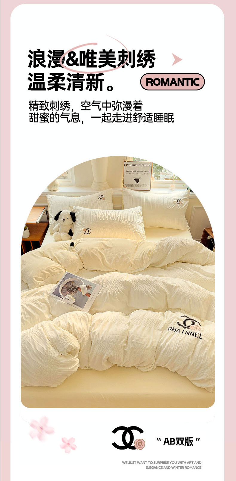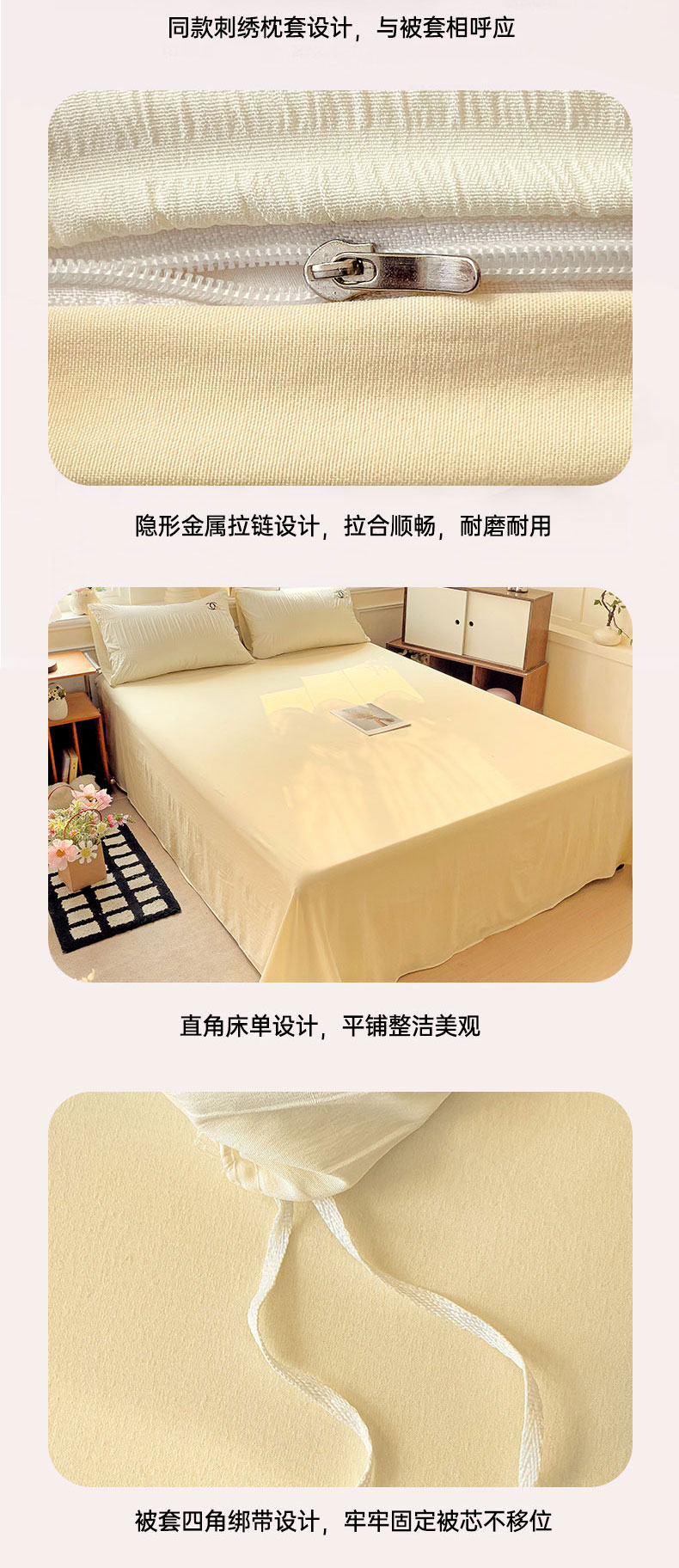 当前位置: 91家纺网 > 商品网购 > 床品套件 > 四件套 > 其它四件套 > 灰鲸 2025新款泡泡纱系列艾丽莎刺绣四件套 泡泡纱艾丽莎-奶昔白+奶油黄