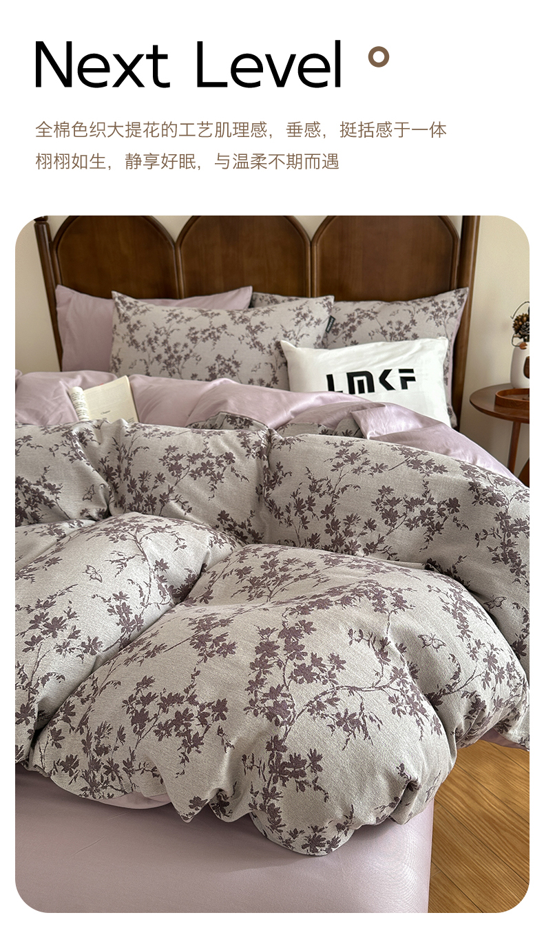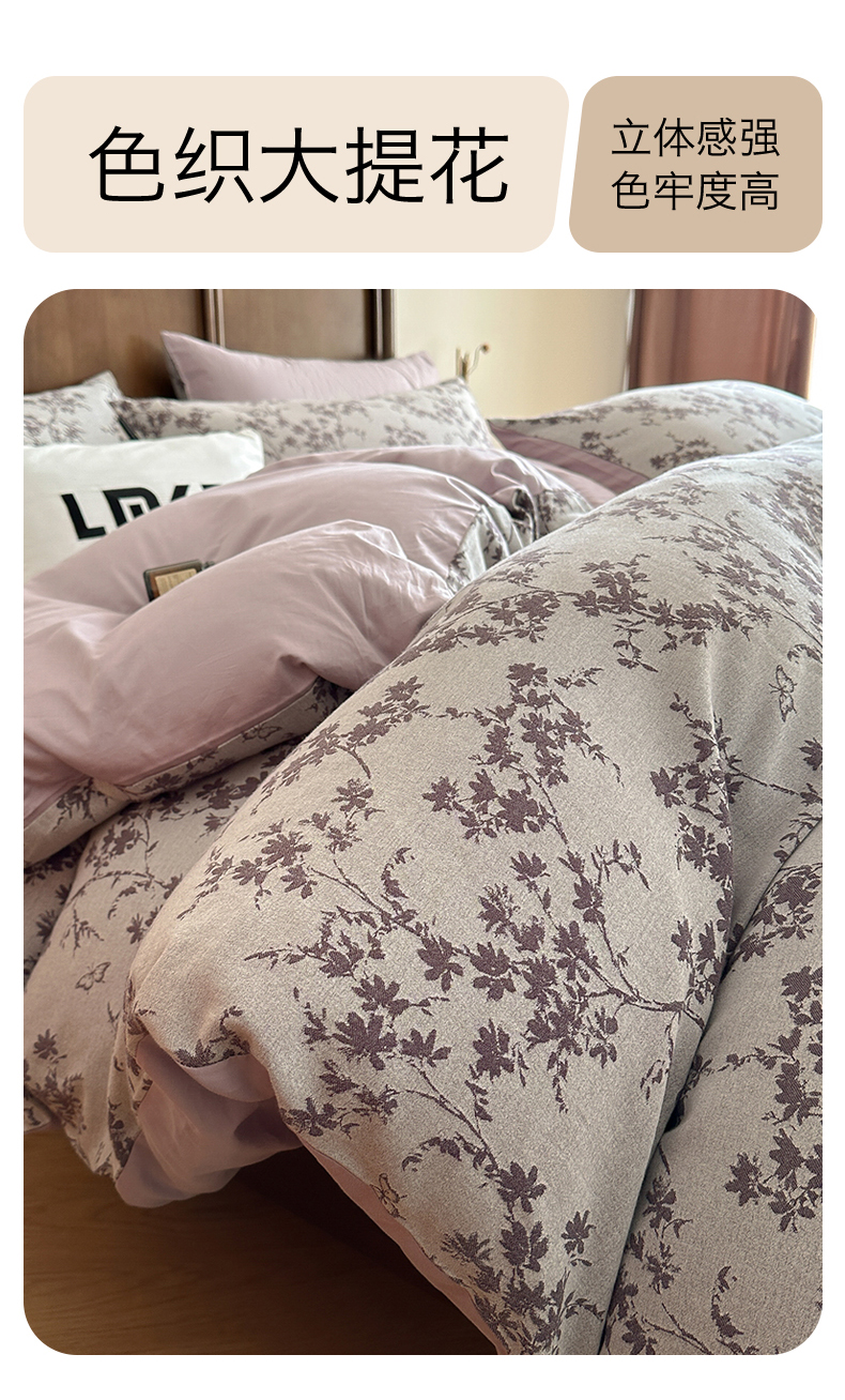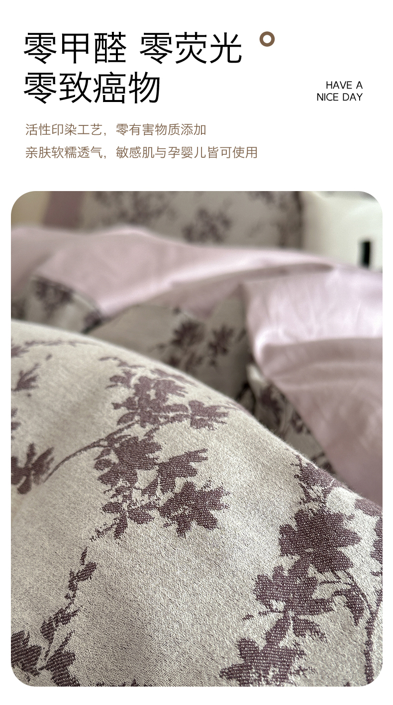 商品名称:蓝米卡夫 2025新品-60S全棉色织大提花四件套(礼盒包装) 爱玲说-紫色