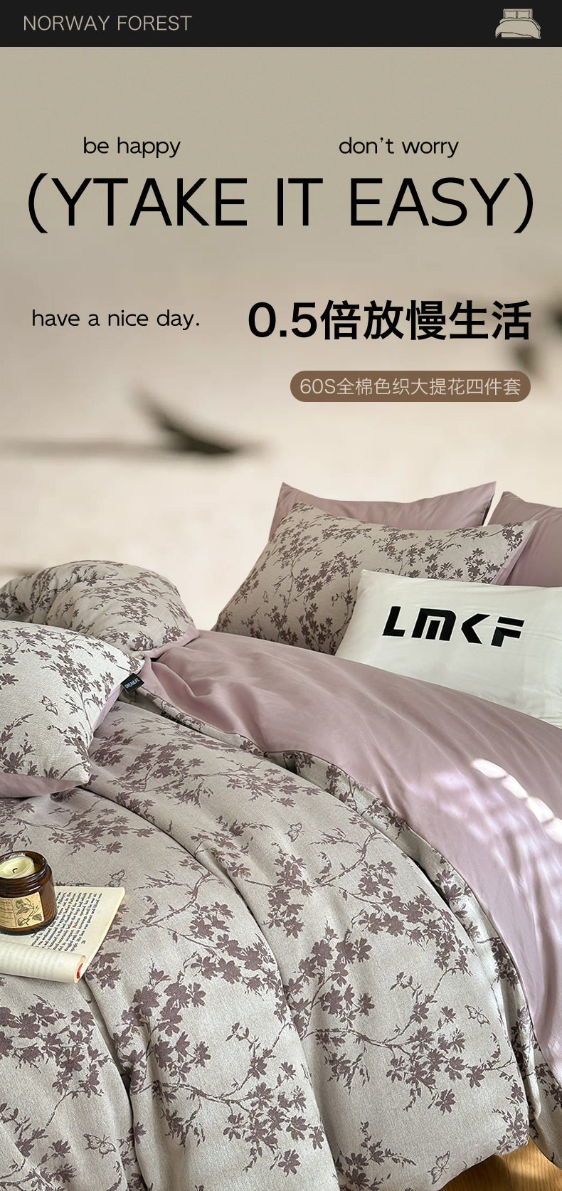 蓝米卡夫 2025新品-60S全棉色织大提花四件套(礼盒包装) 爱玲说-紫色