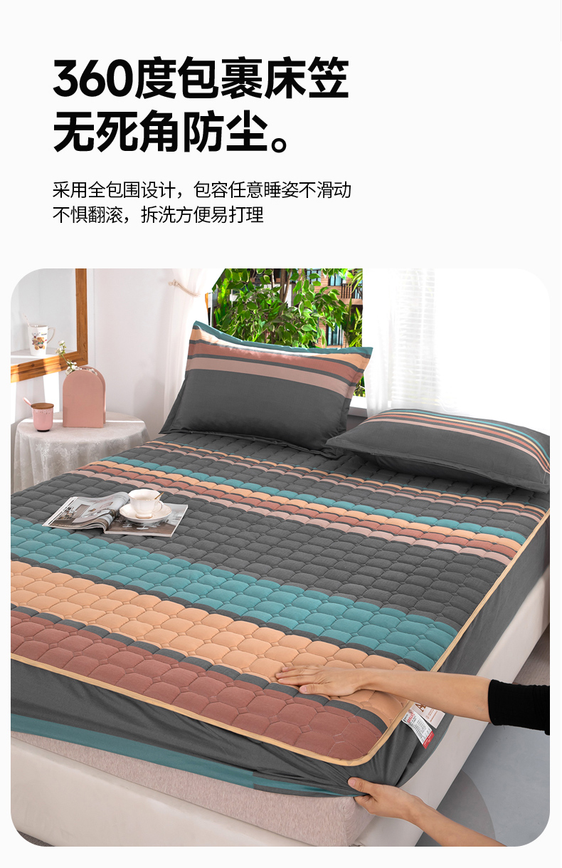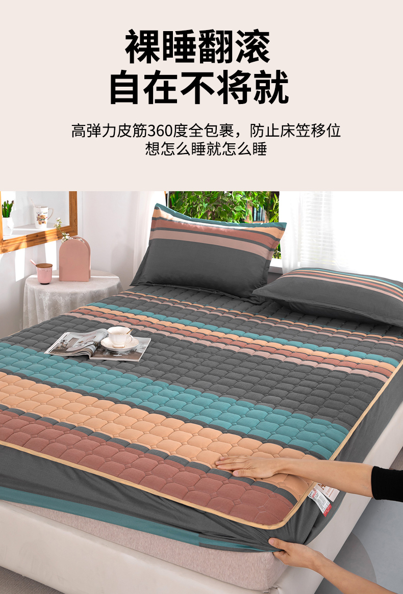 帛洵 2025新款A类水洗棉加棉绗缝定位床笠 斯诺克