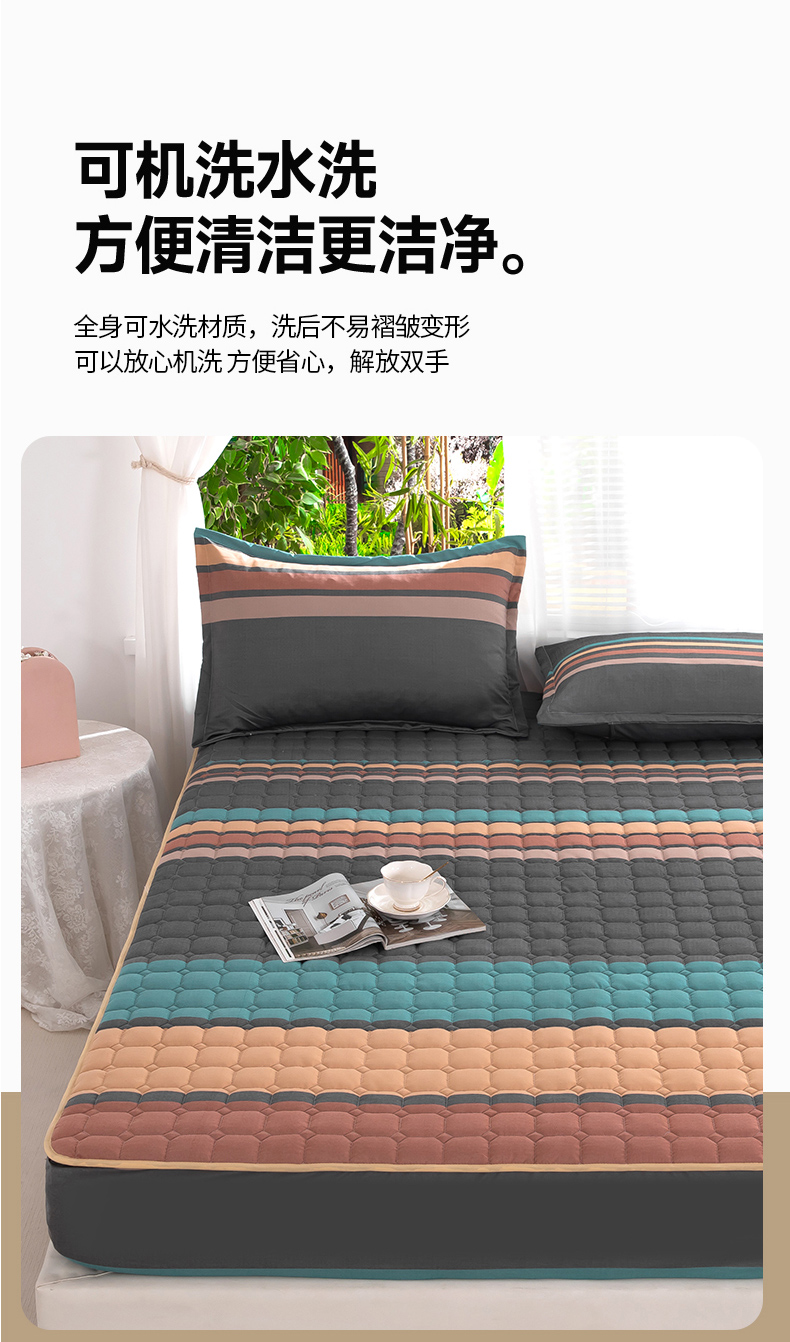 • 91家纺网 家纺一手货源 找家纺 帛洵 2025新款A类水洗棉加棉绗缝定位床笠 斯诺克
