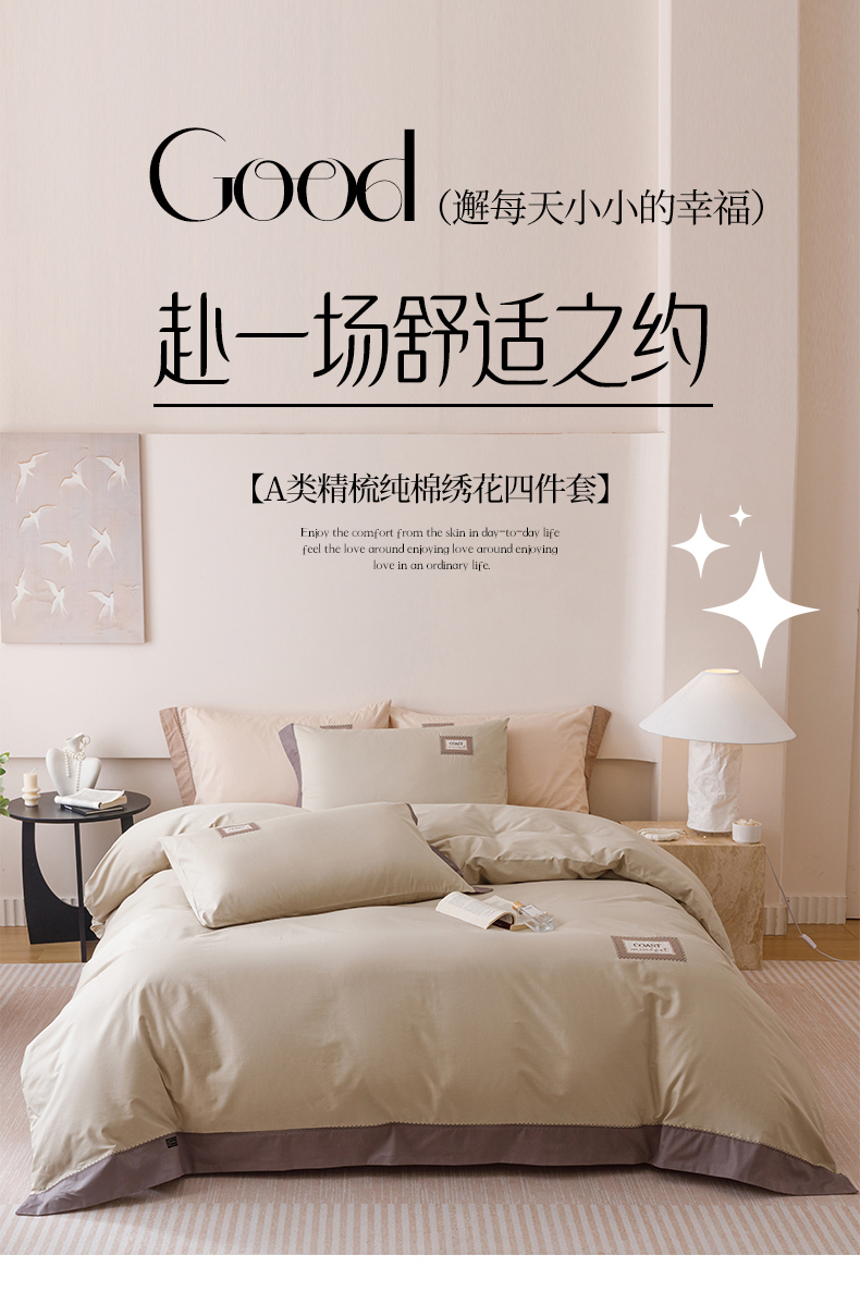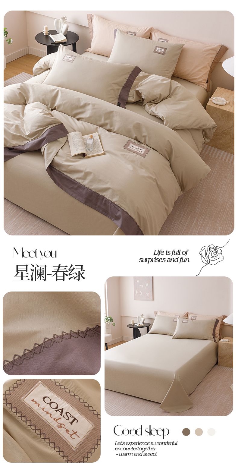 (总)艾莱家纺 2025新款A类精梳贴布纯棉刺绣花四件套-星澜,星澜-春绿,星澜-美拉德,星澜-蜜糖粉,星澜-松露咖,星澜-小米,星澜-烟云灰