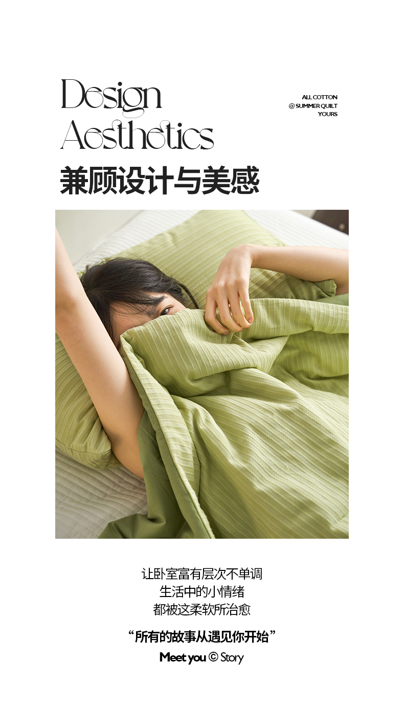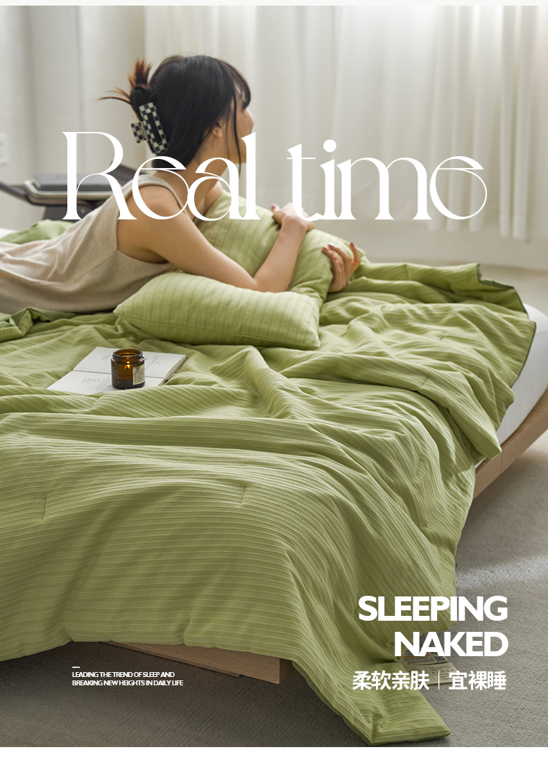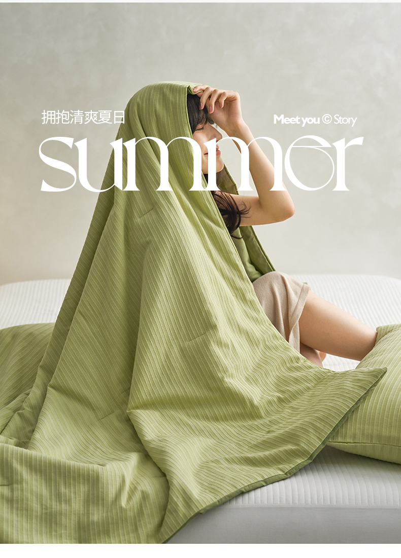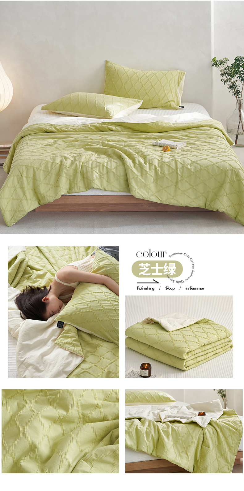 莱宁被业 2025新款A类全棉提花夏被 青芽绿