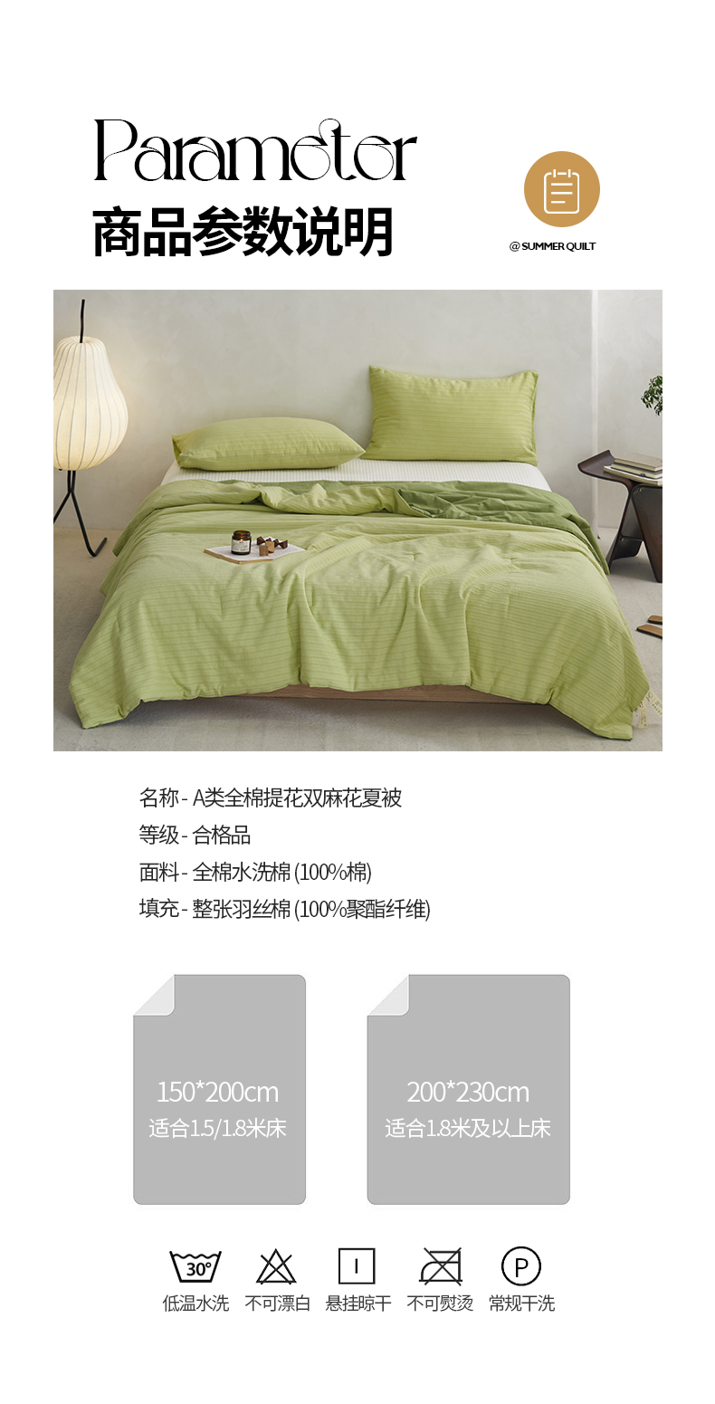 商品名称:莱宁被业 2025新款A类全棉提花夏被 青芽绿
