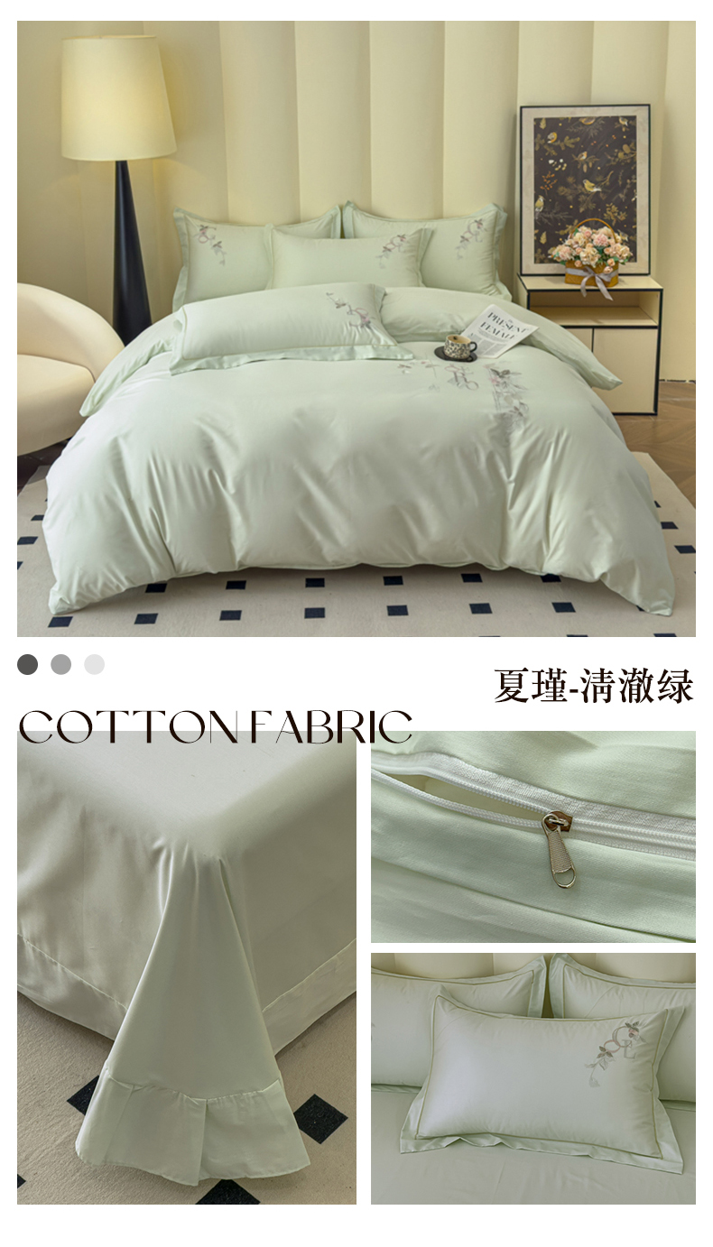 商品名称:U品汇 2025新款纯棉全棉长绒棉刺绣绣花高端礼盒四件套-夏瑾系列 夏瑾-清澈绿