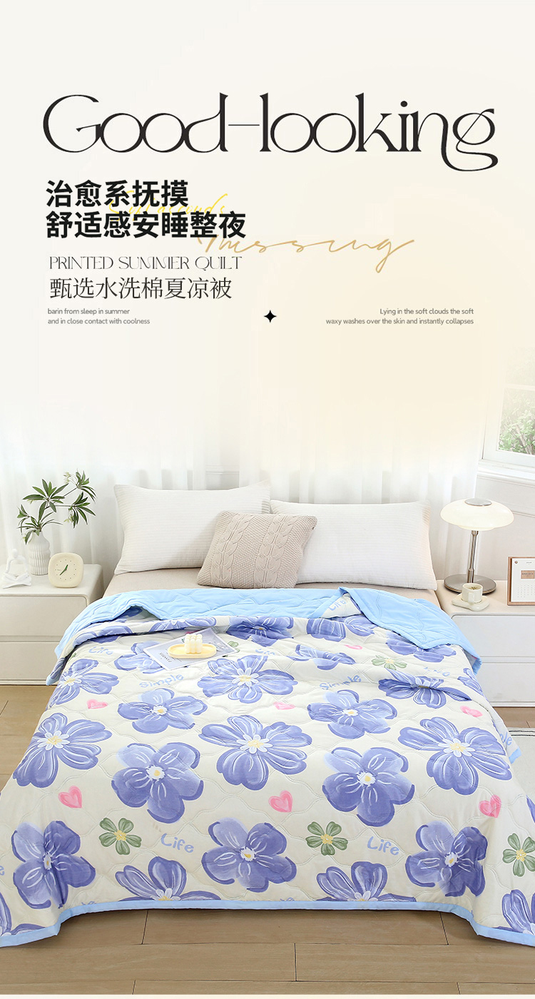商品名称:爱派 2025新款直播爆款印花水洗棉夏被夏凉被空调被被子被芯 花舞悠然