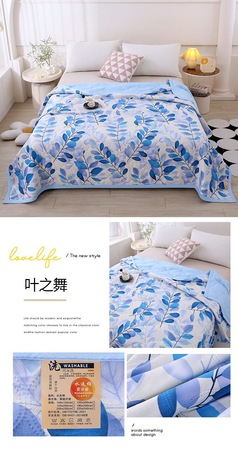 商品名称:爱派 2025新款直播爆款印花水洗棉夏被夏凉被空调被被子被芯 叶之舞