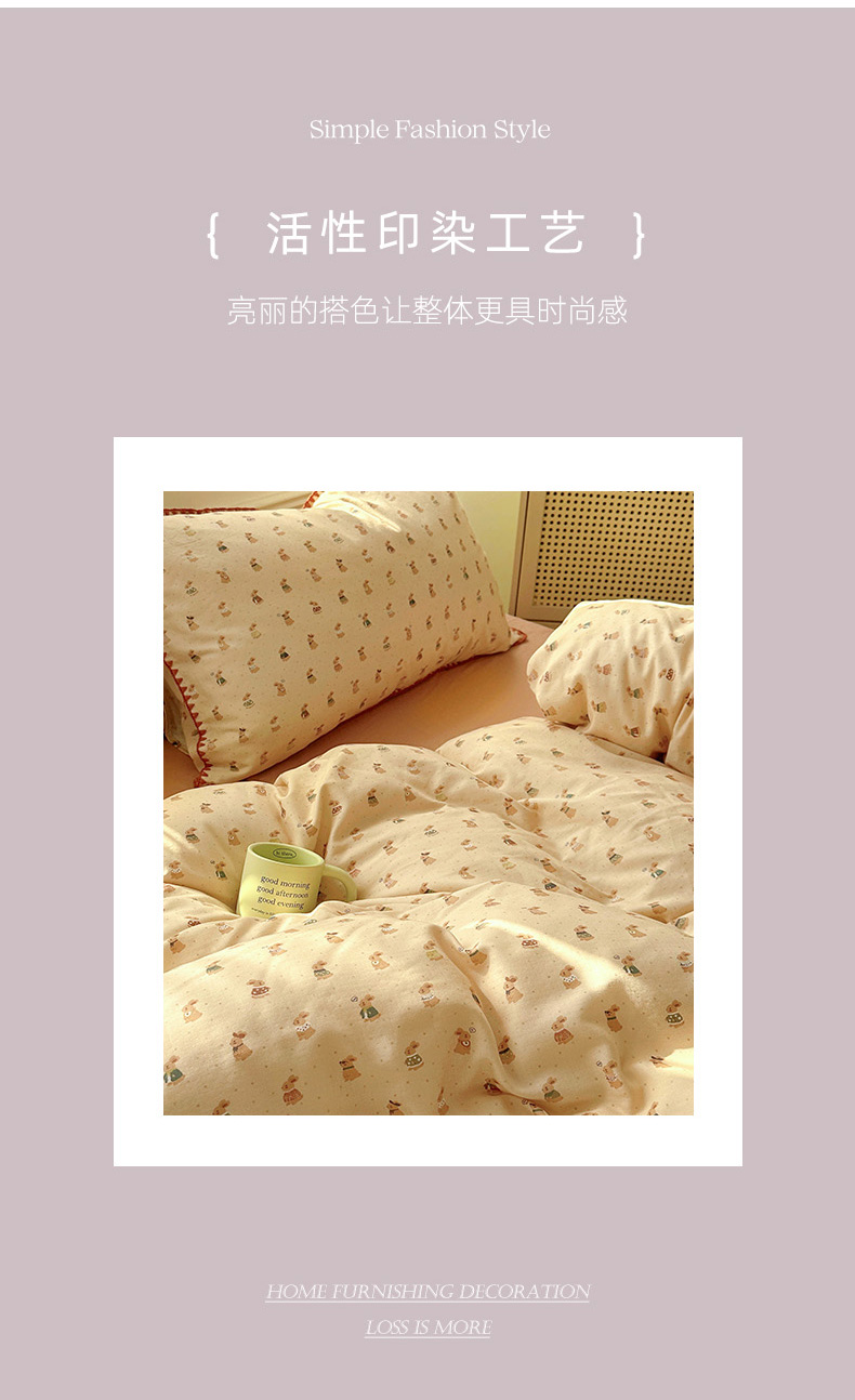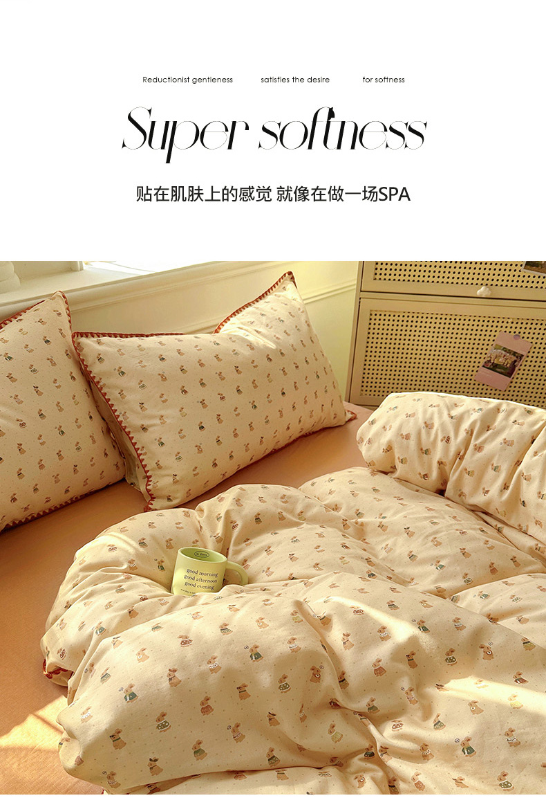 商品名称:田野家纺2025新款A类全棉双层纱四件套 可爱兔
