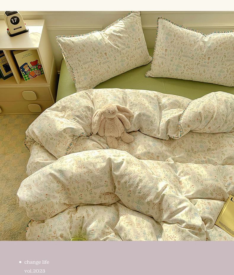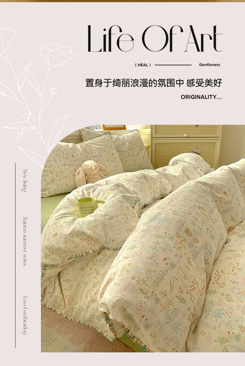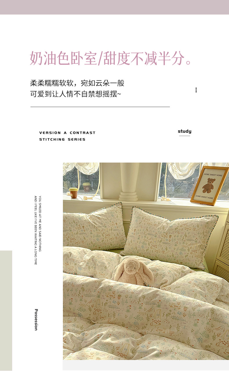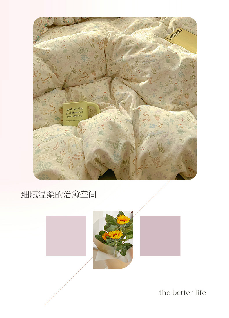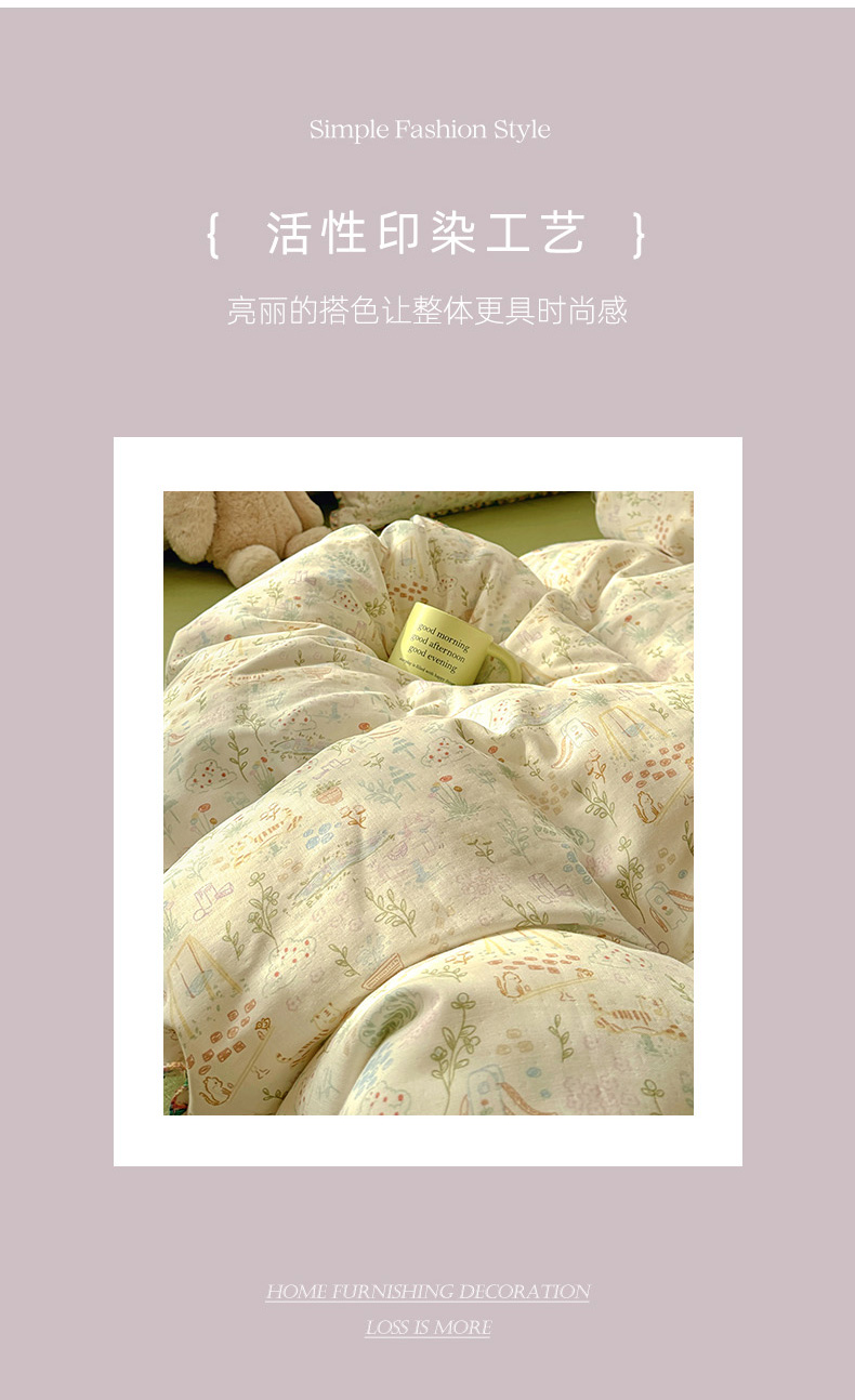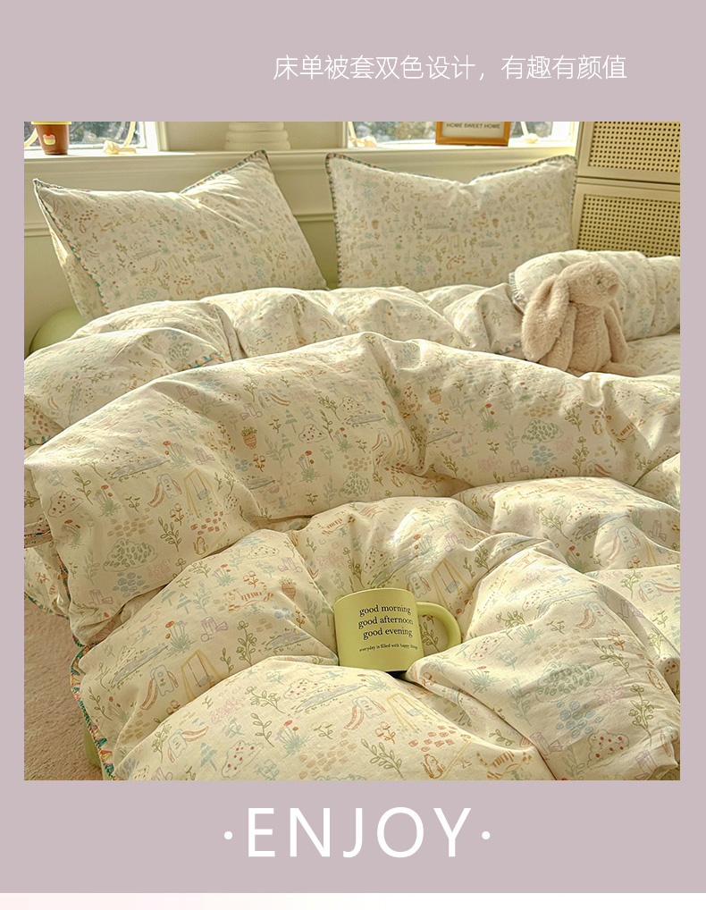(总)田野 2022新款水洗棉小清新小碎花全棉四件套,花丛,花涧,绿婉,曼舞,桃夭,甜馨草莓,兔兔,银杏