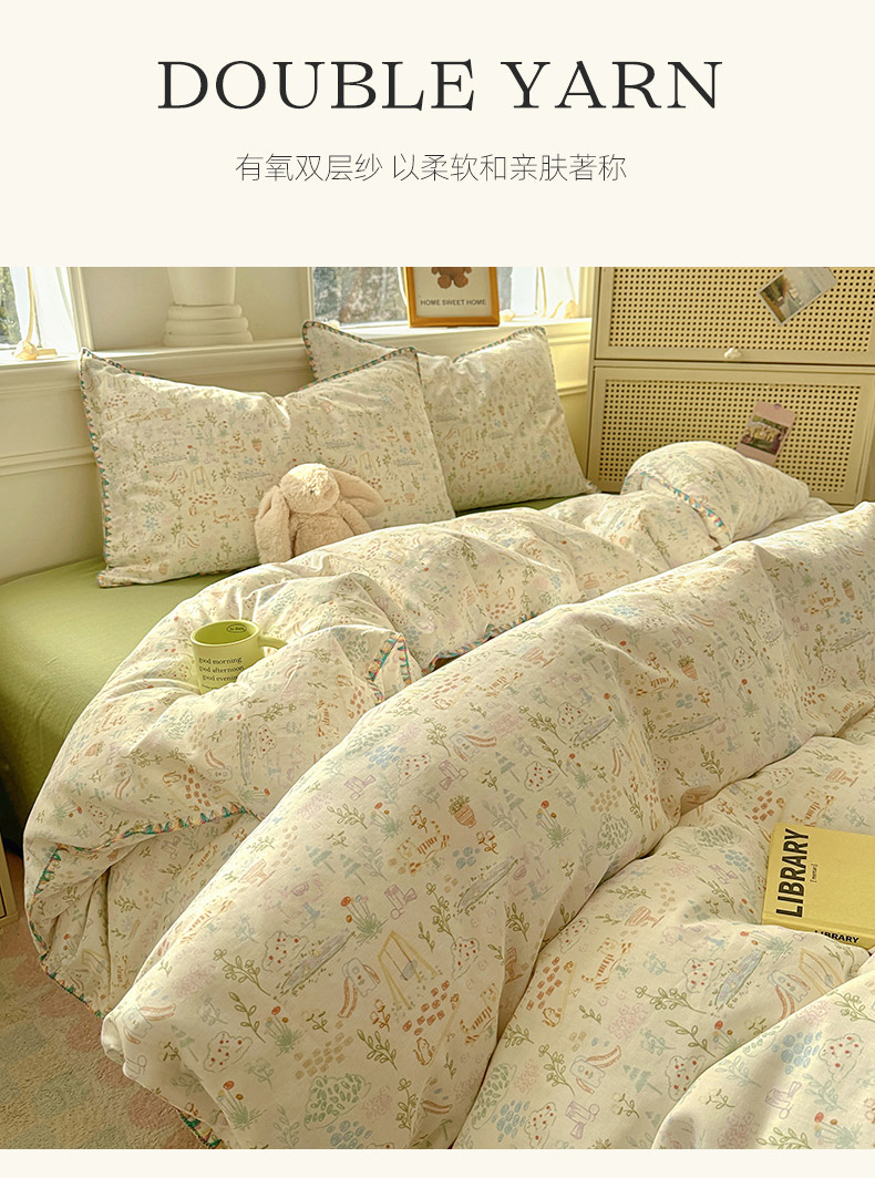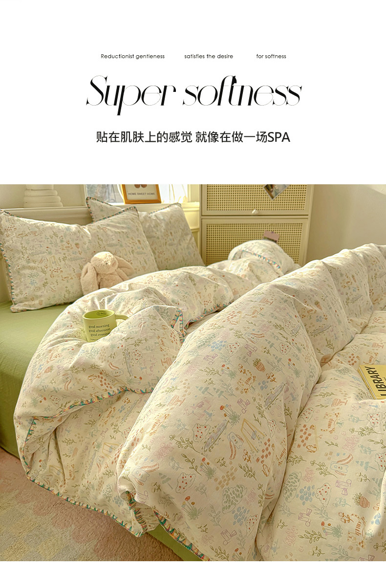 (总)田野 2023新款全棉A类贝壳边双层纱四件套,饼干熊,波波兔,呆萌熊,萌宠乐园,萌兔森林,甜心小兔,薇拉,小蘑菇,伊甜