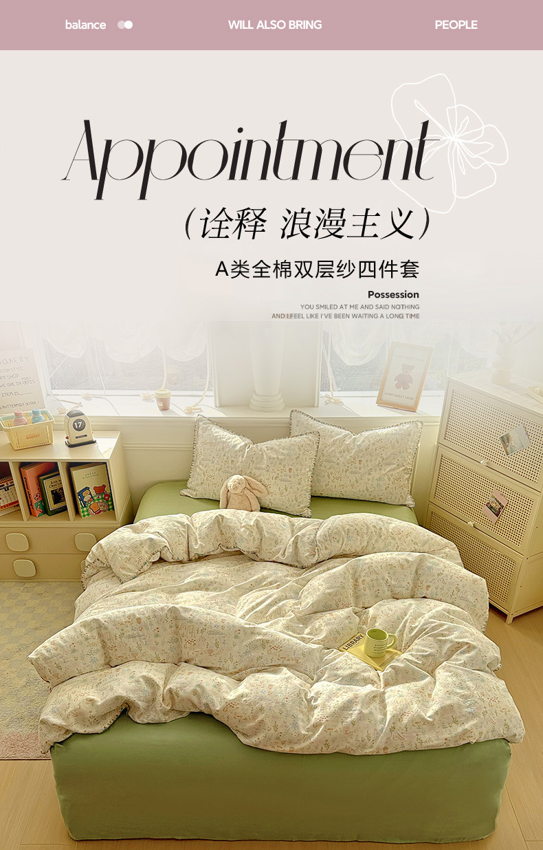 商品名称:田野家纺2025新款A类全棉双层纱四件套 涂鸦日记