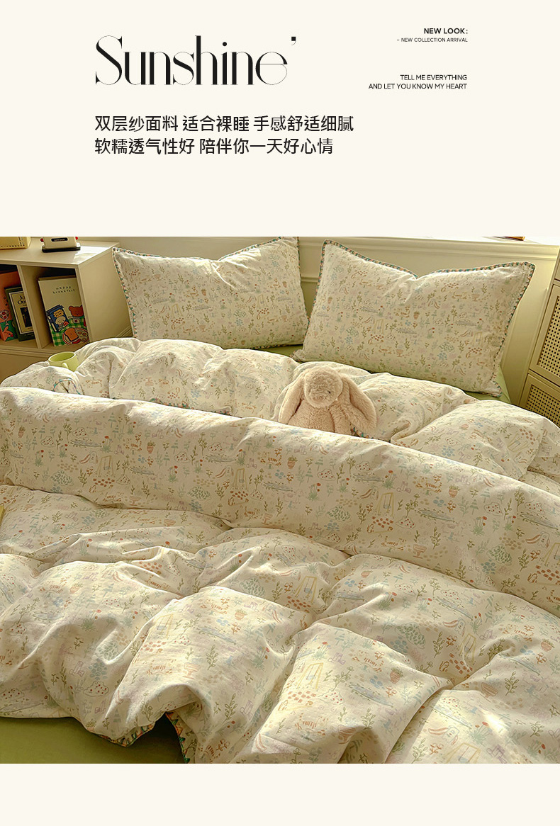 田野家纺2025新款A类全棉双层纱四件套 涂鸦日记