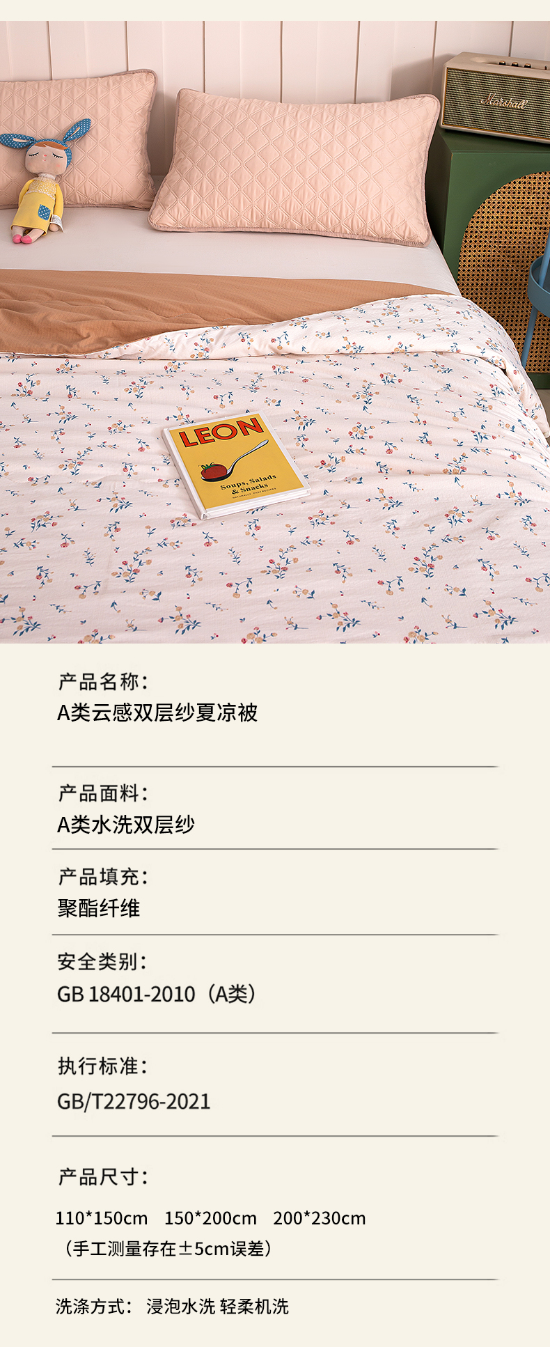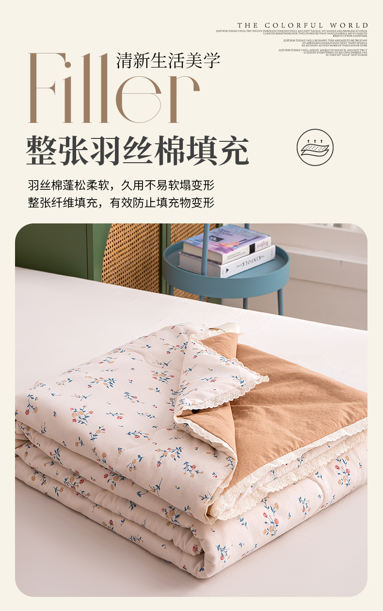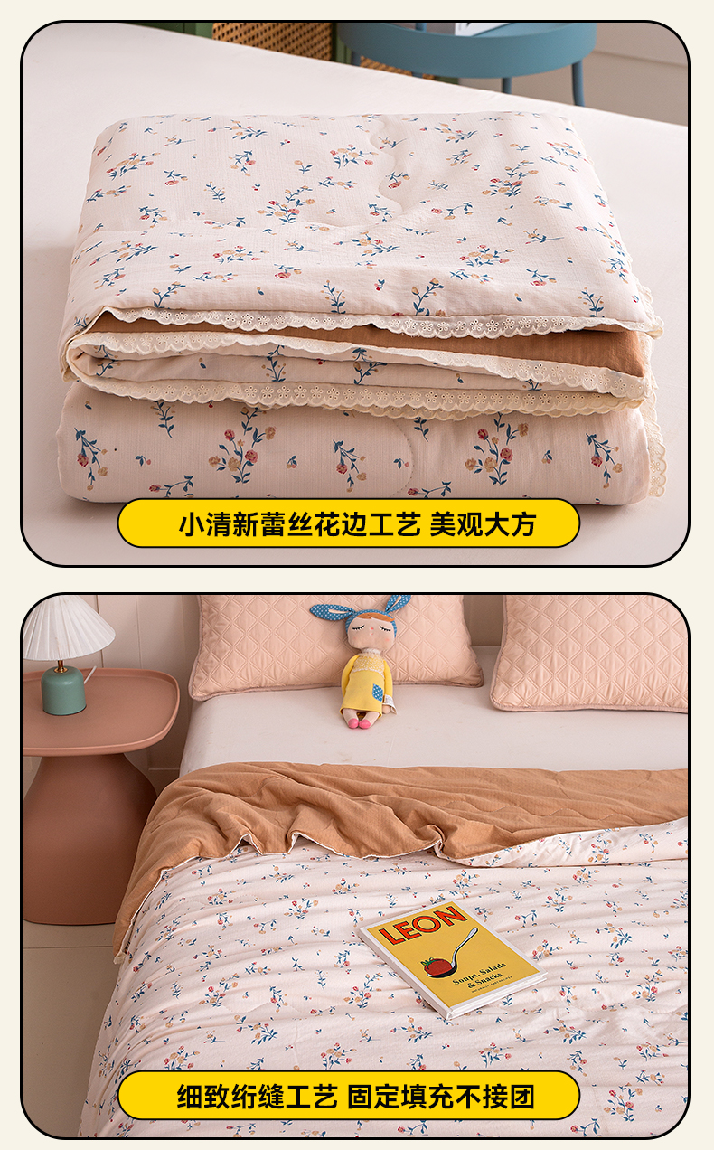 商品名称:艺菲阁家纺 2025新款花边款小碎花A类云感双层纱夏被 春风十里
