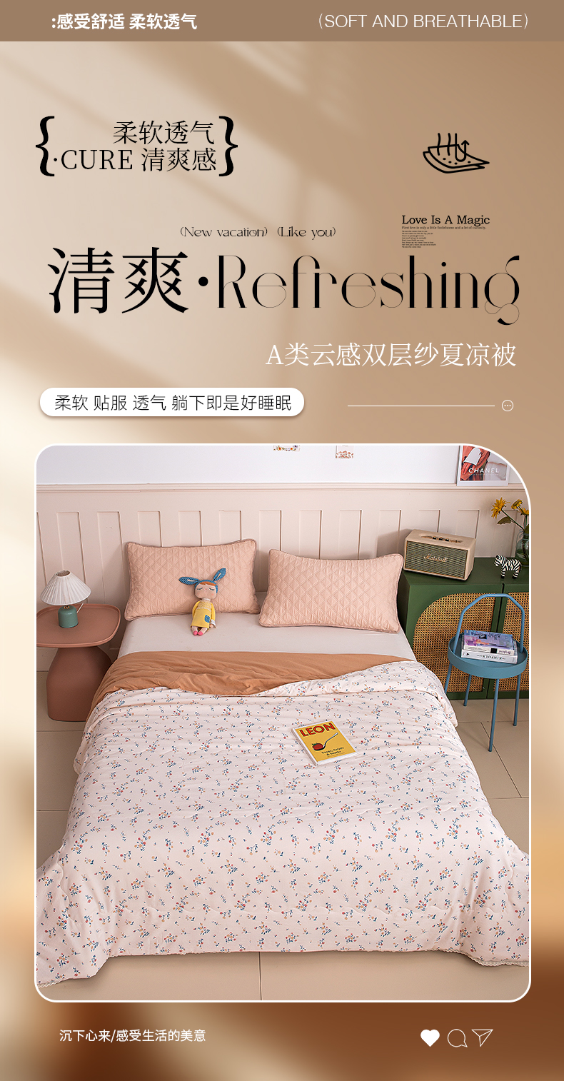 (总)艺菲阁家纺 2025新款花边款小碎花A类云感双层纱夏被,春风十里,海像深林,偏偏宠爱,倾心-米,人间草木,森田野园,相思-粉,相思-蓝